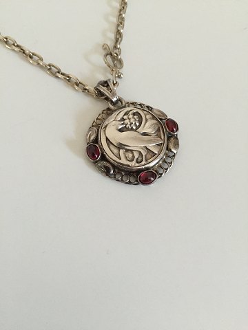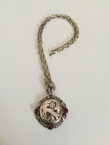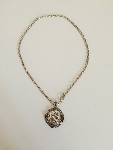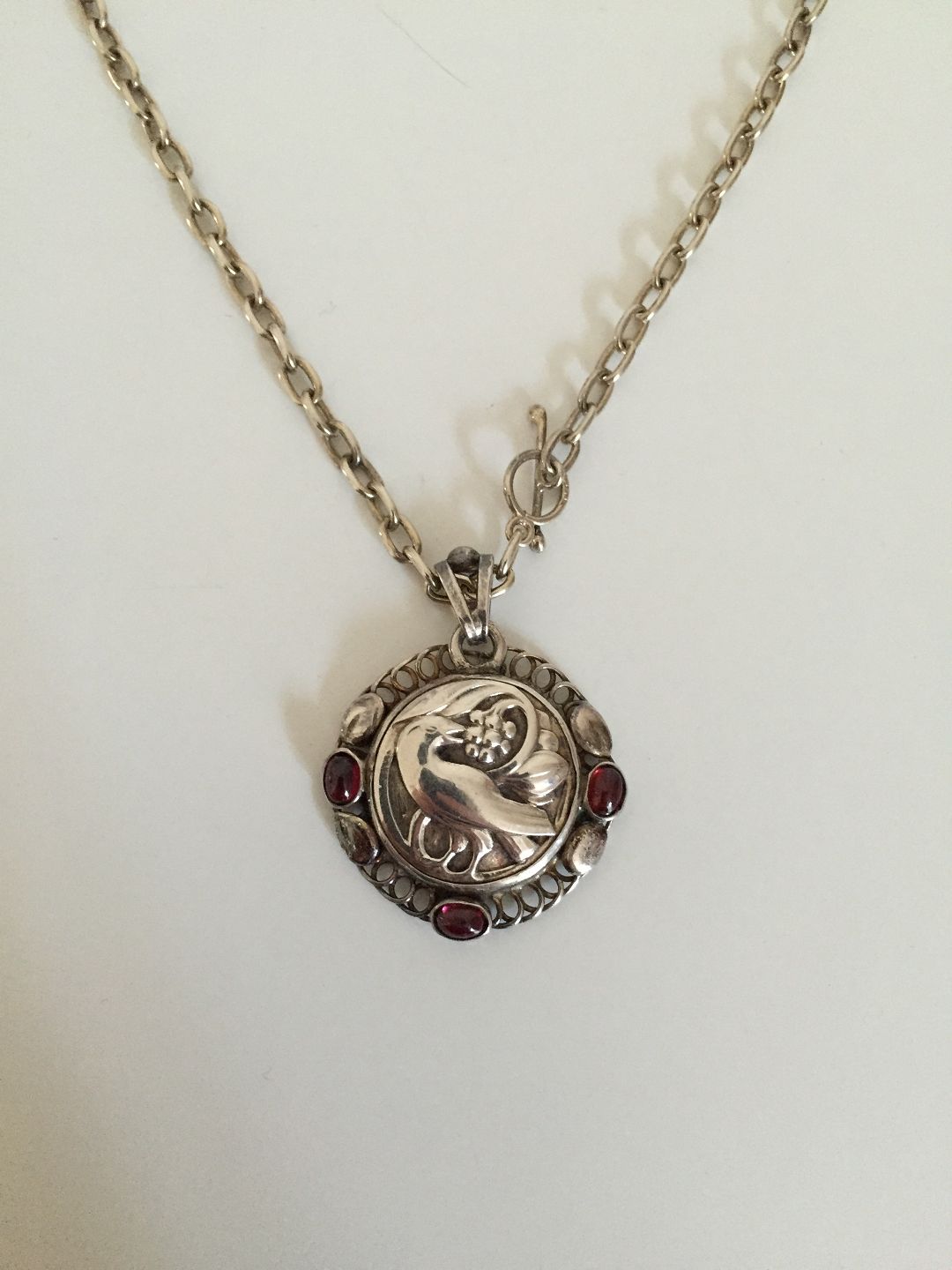 Georg Jensen necklace in sterling silver with stone made at GJ by smithy Andreasen. Chain measures 30 cm / 11 13/16 in. diameter of pendant measures 2.5 cm / 0 63/64 in. Weighs 19 g / 0.70 oz.