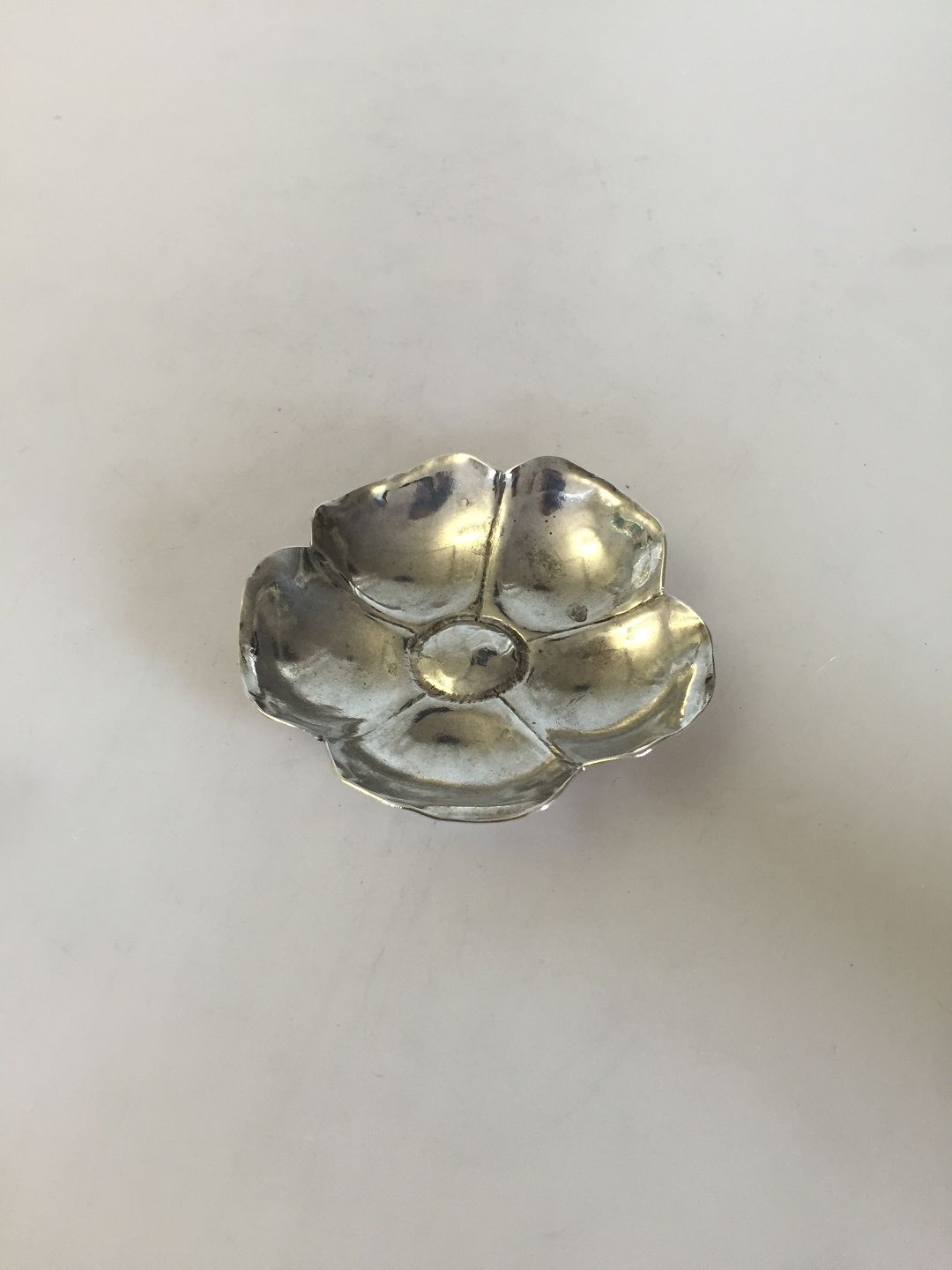 Small silverbowl / ashtray shaped as a flower. Weighs 32 g (1,15 oz). Diameter measures 8 cm (3 5/32")