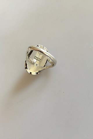Georg Jensen Sterling Silver Ring No 19 with Clear Green Agate . From after 1945. Ring Size 54 / US 6 3/4. Stone measures 2 cm / 0 25/32 in. x 1 cm / 0 25/64 in.