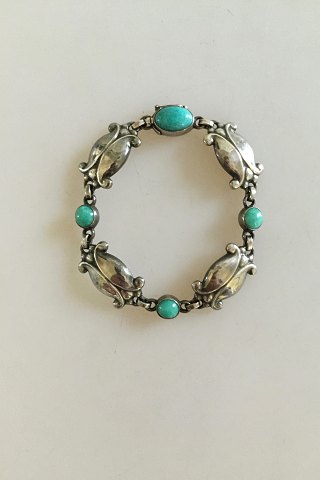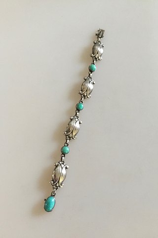 Georg Jensen Sterling Silver Bracelet No 11 with Green Agates. From after 1945. With french import marks.