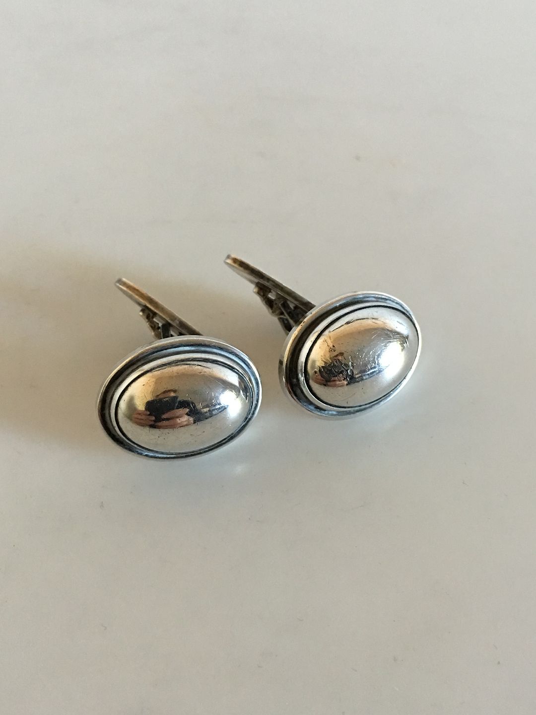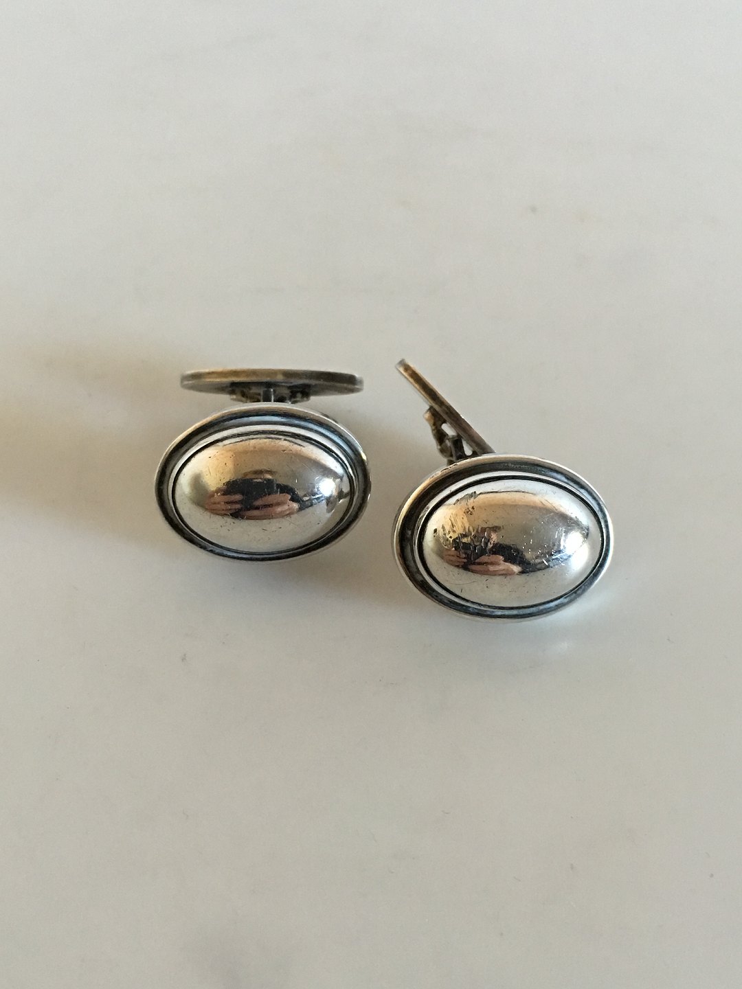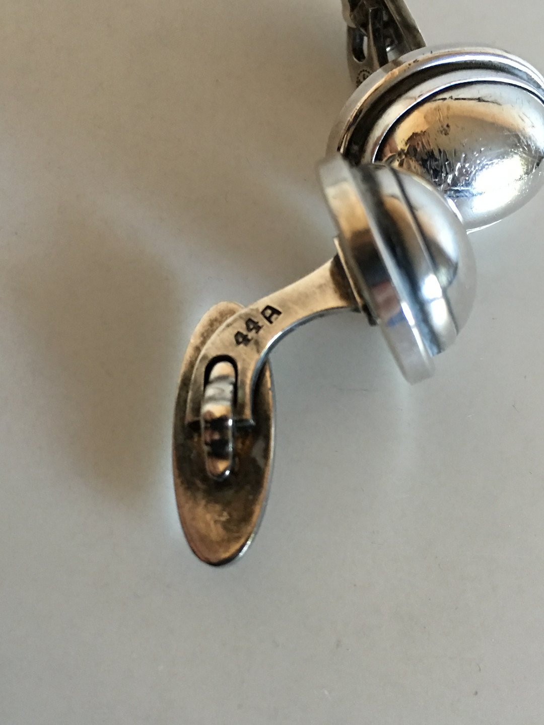 Georg Jensen Sterling Silver Cuff Links No 44A with Silver Stones. From after 1945. Weighs 15 grams (0.45 oz). Measures 2.2 cm (0 55/64")
