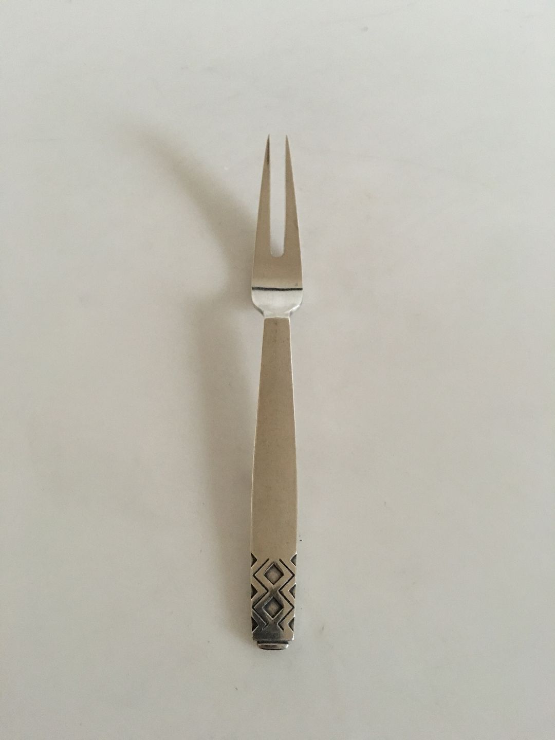 Georg Jensen Sterling Silver Mayan / Rune Cold Cuts Fork No 144. Measures 15.1 cm (5 15/16"). Designed Johan Rohde 1937.