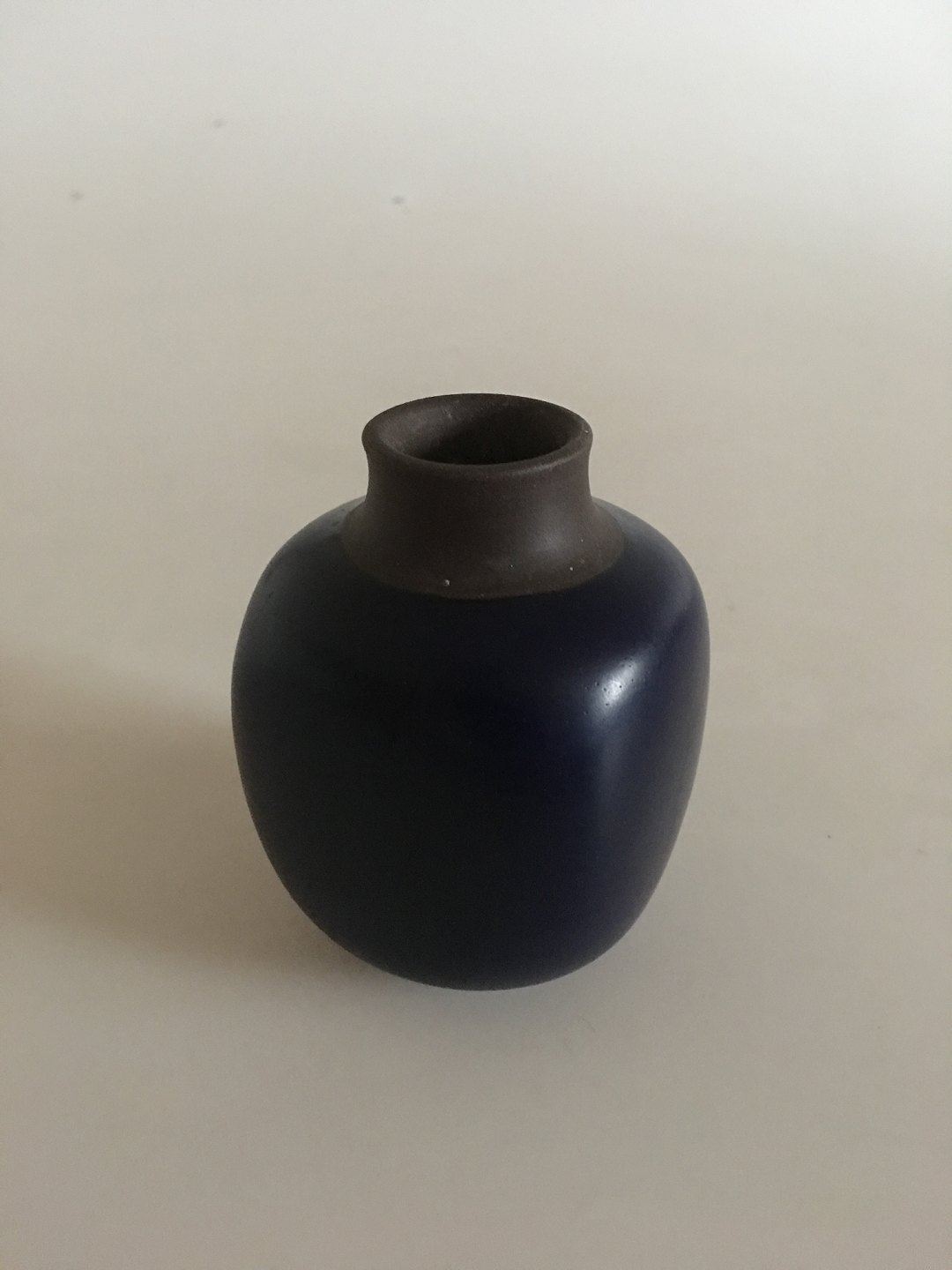 Royal Copenhagen Small Stoneware Vase No 21590/B220-3. With Dark Bue Glaze. 8.5 cm H (3 11/32"). In perfect condition. 1st Quality.