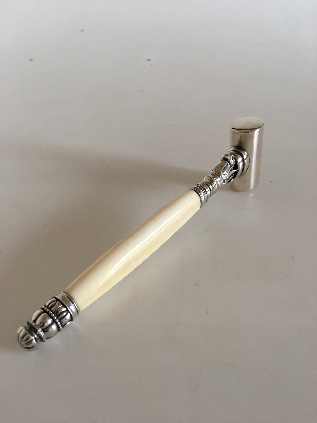 Georg Jensen Silver Acorn Table Hammer with Ivory Handle. 22 cm L (8 21/32"). Weighs 270 grams (9.60 oz). In great condition. With early marks from the 1920's.