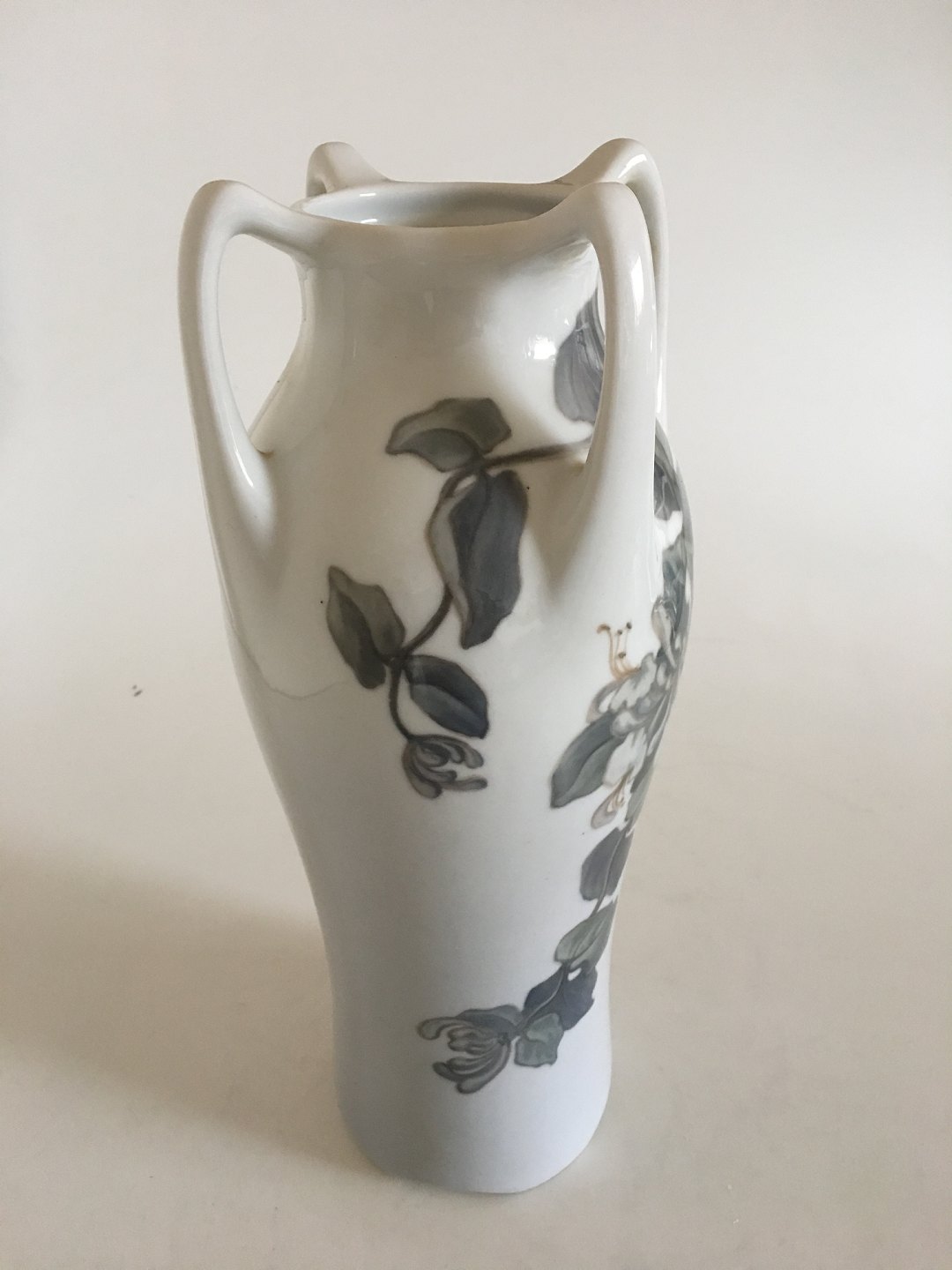 Royal Copenhagen Art Nouveau Vase No 330/246 with 4 Handles and Honeysuckle Motif. 33 cm H (12 63/64"). 1st Quality. In nice whole condition.