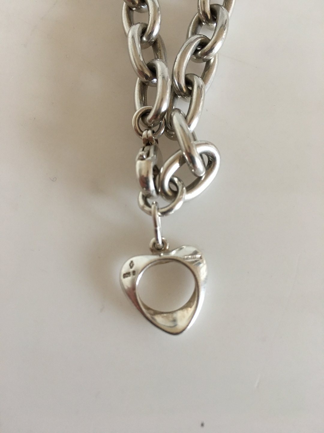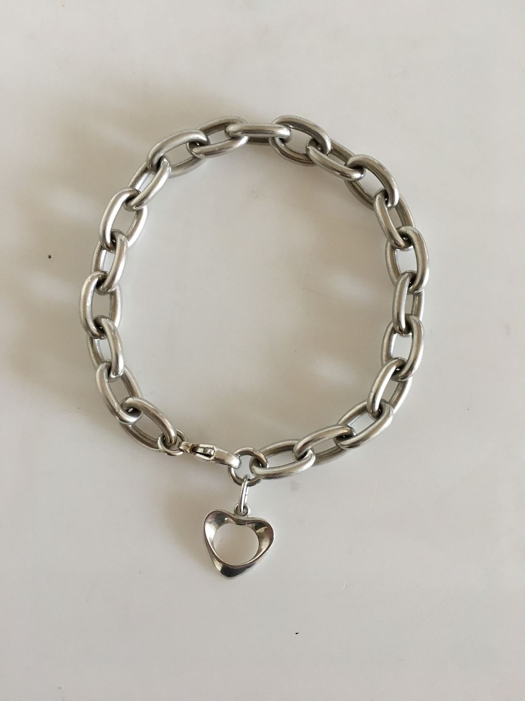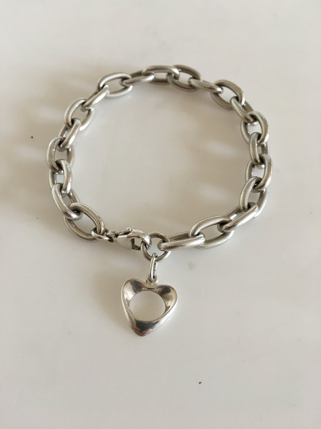 Georg Jensen Sterling Silver Charmbracelet with a Heart Pendant. 20.5 cm L (8 5/64"). 0.6 cm W (0 15/64"). Weighs 35 grams (1.15 oz).