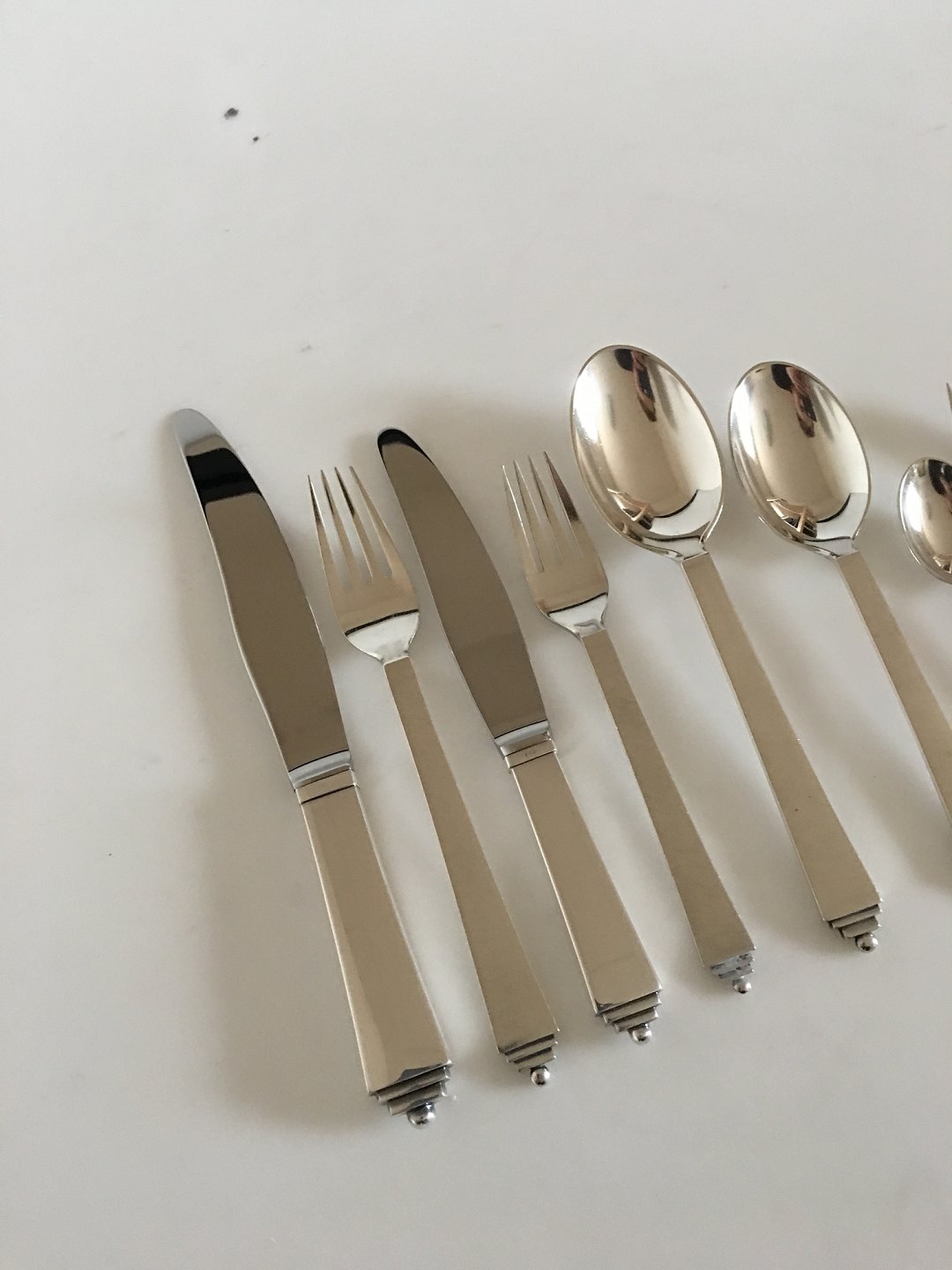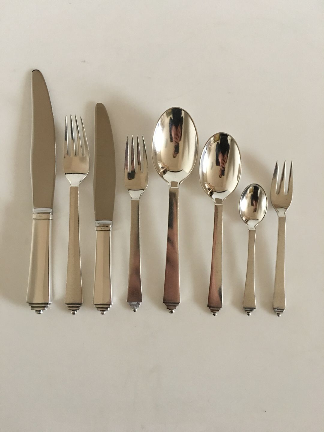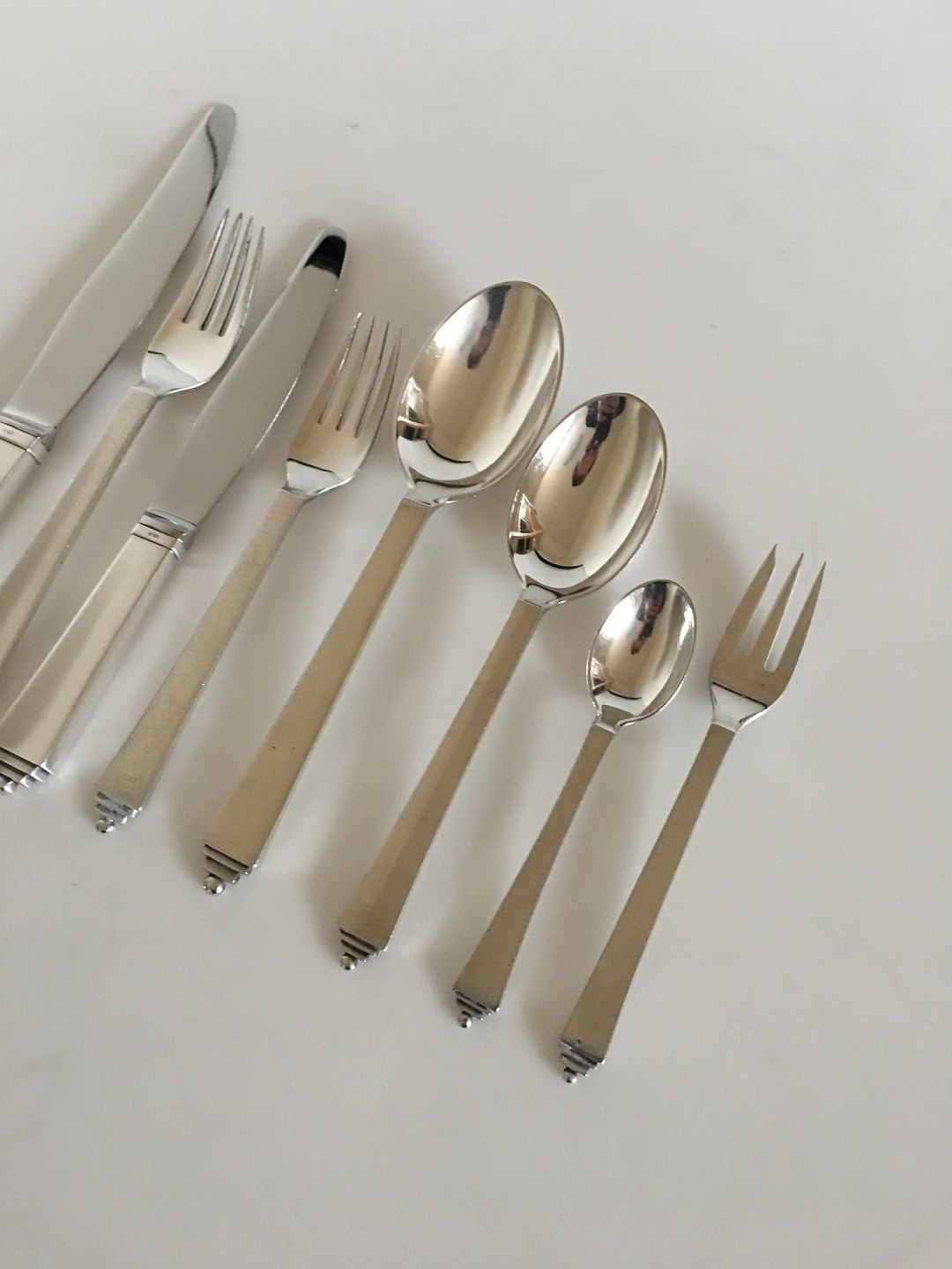 Georg Jensen Sterling Silver Pyramid Flatware Set for 6 People. 48 Pieces. The set consists of the following items;