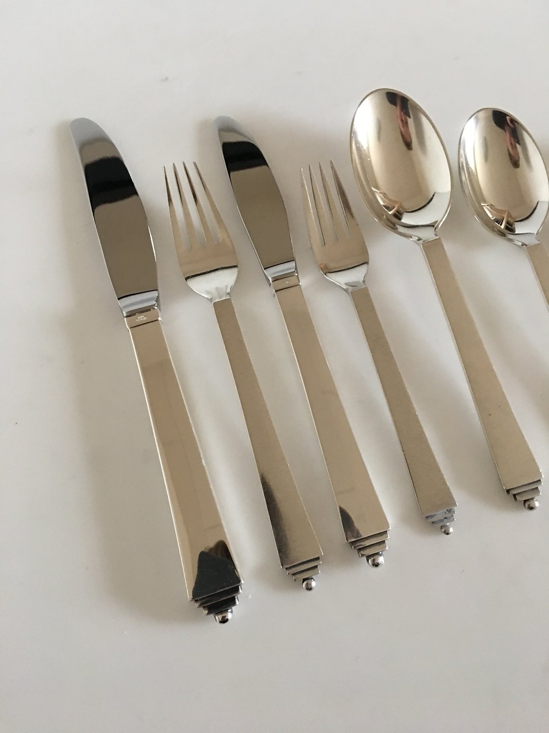 Georg Jensen Sterling Silver Pyramid Flatware Set for 6 People. 48 Pieces. The set consists of the following items;