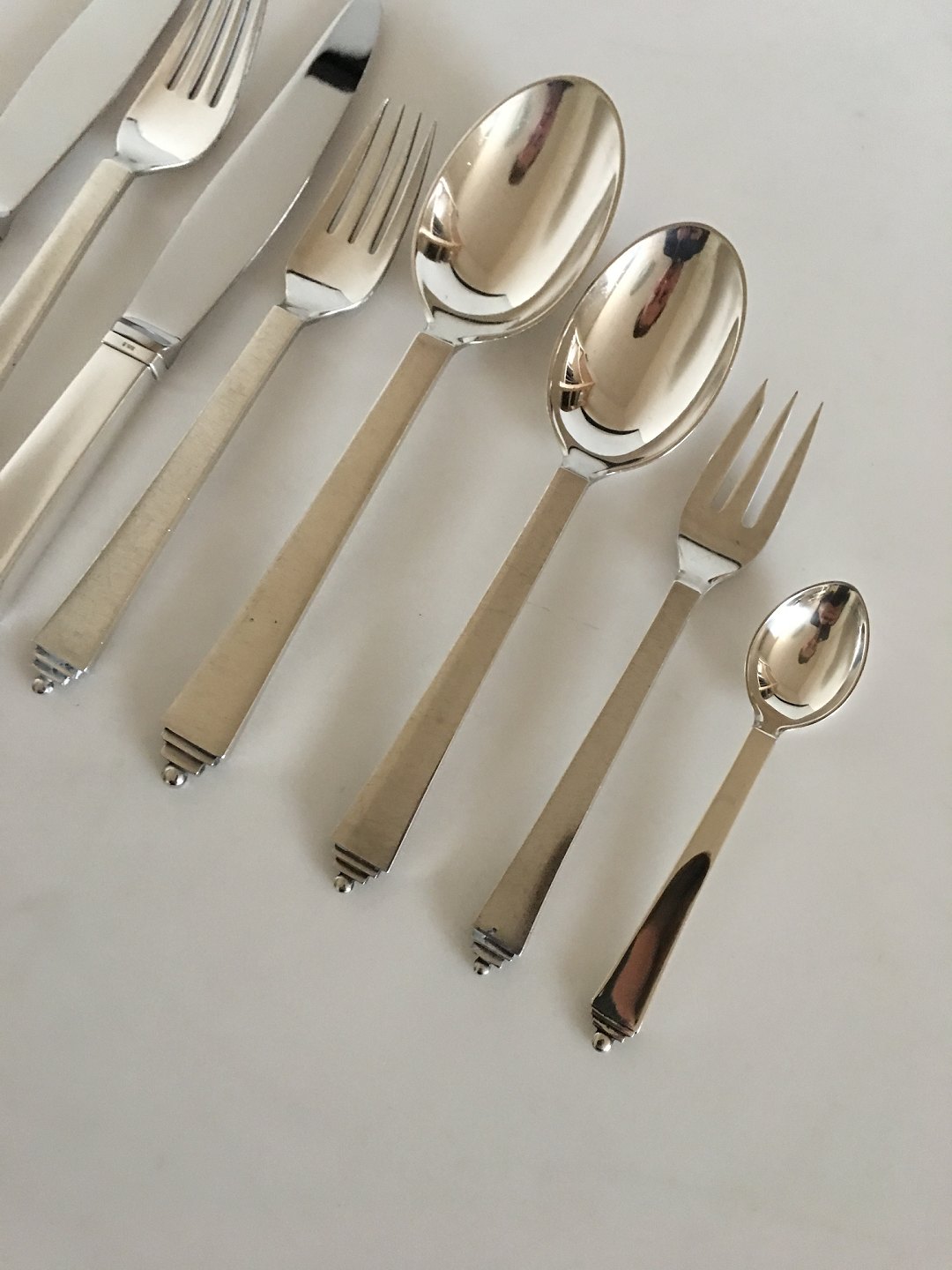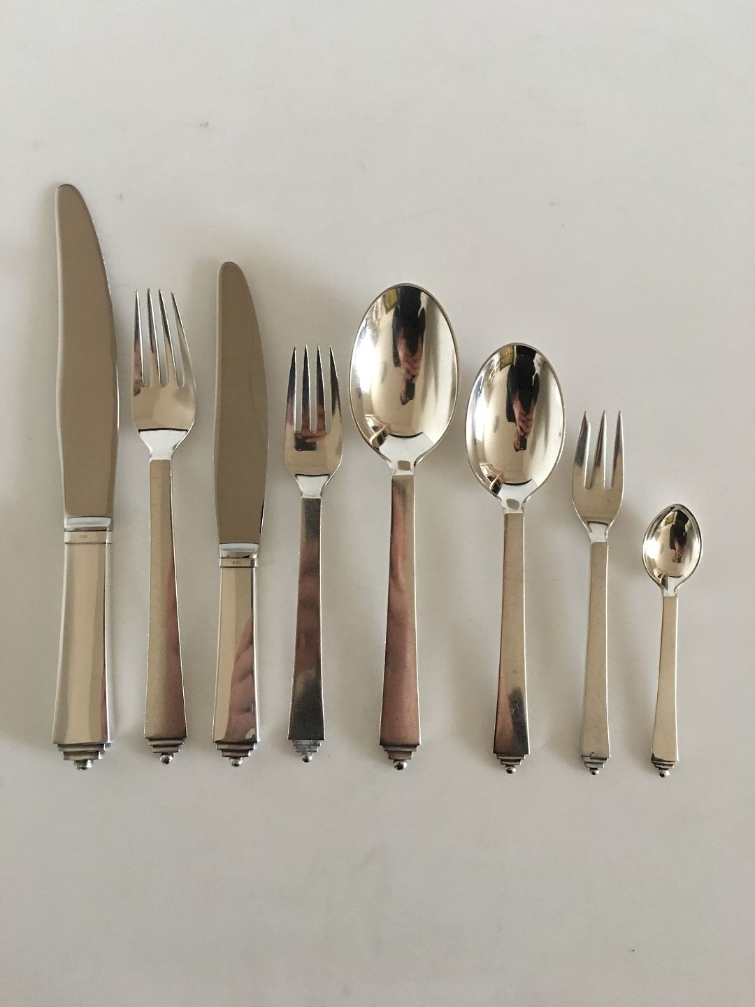 Georg Jensen Sterling Silver Pyramid Flatware Set for 12 People. 96 Pieces. The set consists of the following items;