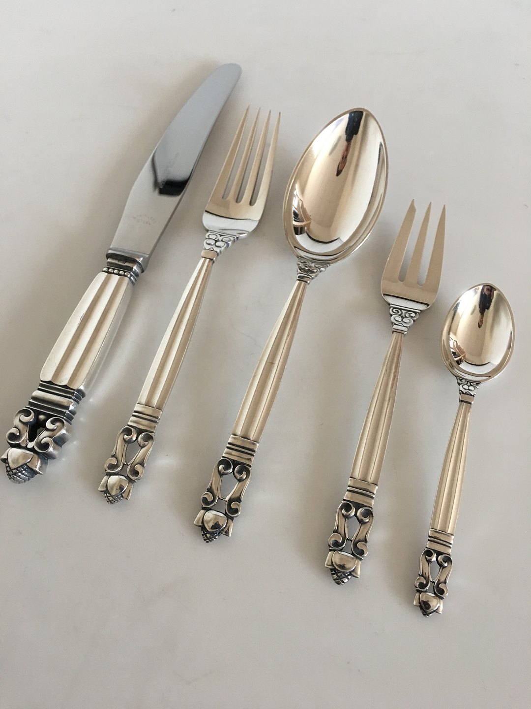Georg Jensen Sterling Silver Acorn Luncheon Flatware Set. 40 Pieces. 8 People. The set consist of the following items;