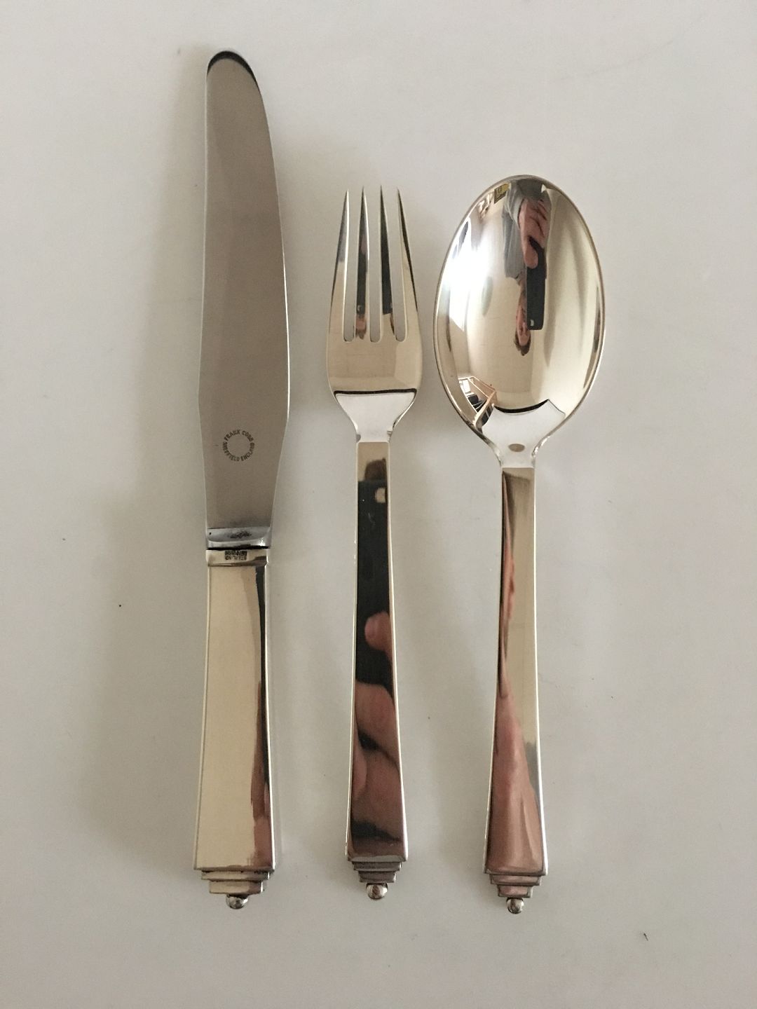 Georg Jensen Sterling Silver Pyramid Flatware Set for 6 People. with Vintage GJ marks 1932-1944. The set consist of;