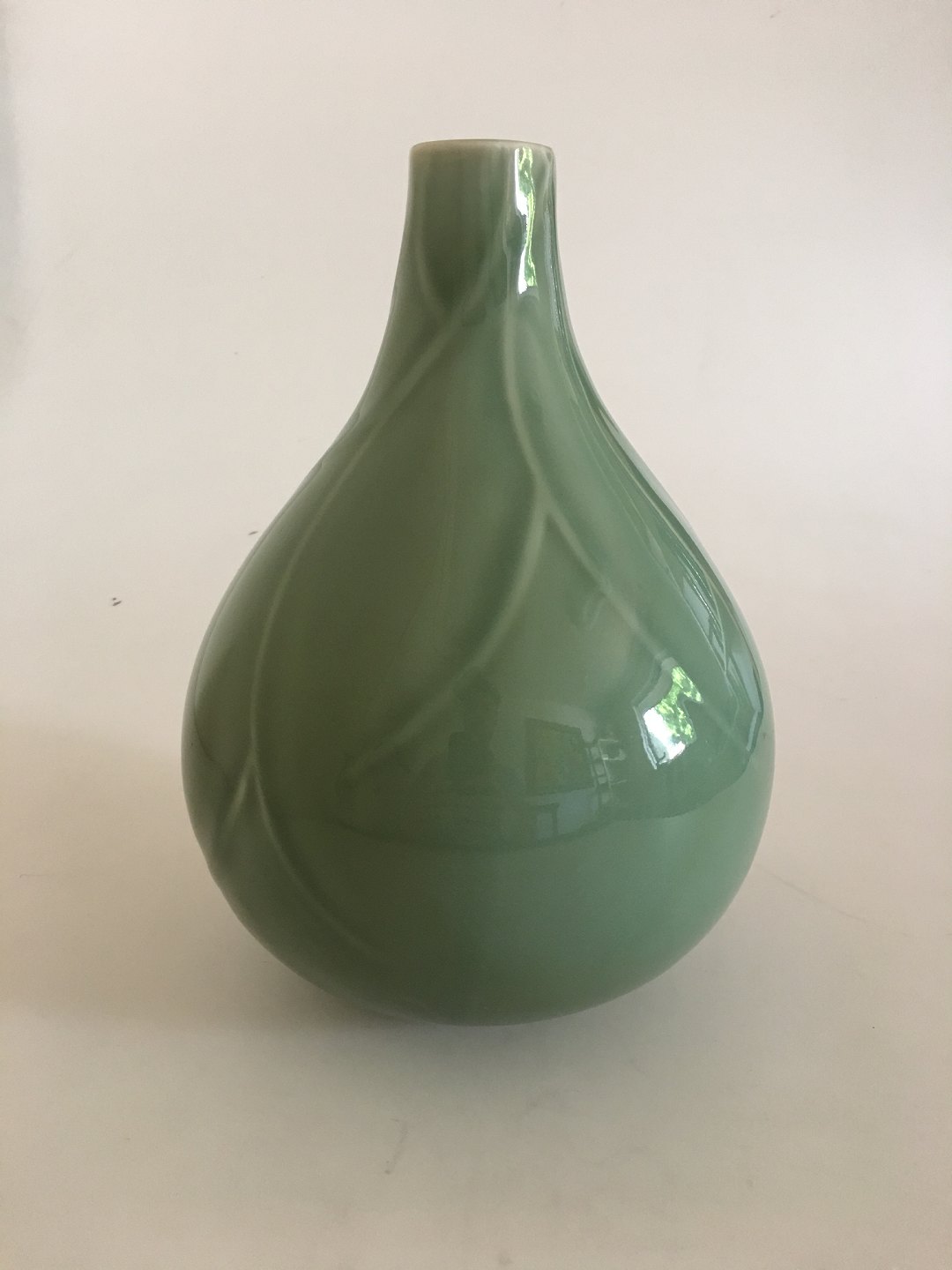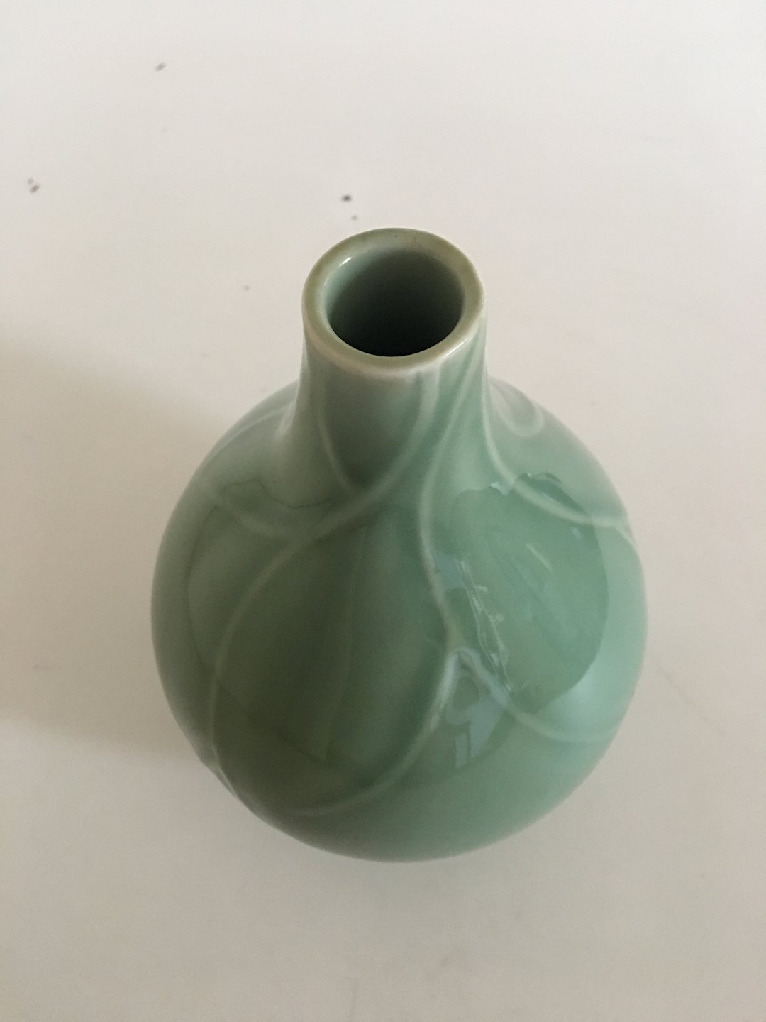 Axel Salto for Royal Copenhagen Stentøjsvase i Grøn Celadon Glasur. 24 cm Høj. I perfekt stand. Fra omkring 1950'erne.