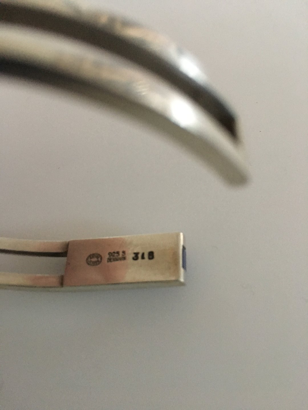 Georg Jensen Sterling Silver Bracelet No 31B. with Blue Ornament (Might be lapis or some other blue stone). Measures 5 cm dia / 1 31/32". Weighs 17 g / 0.55 oz.