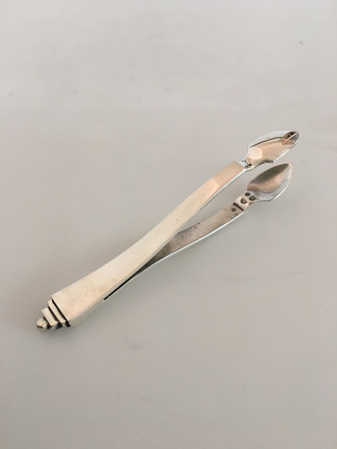 Georg Jensen Pyramid 830 Silver Sugar Tongs No 166 from 1920s. Measures 11 cm / 4 21/64 in.