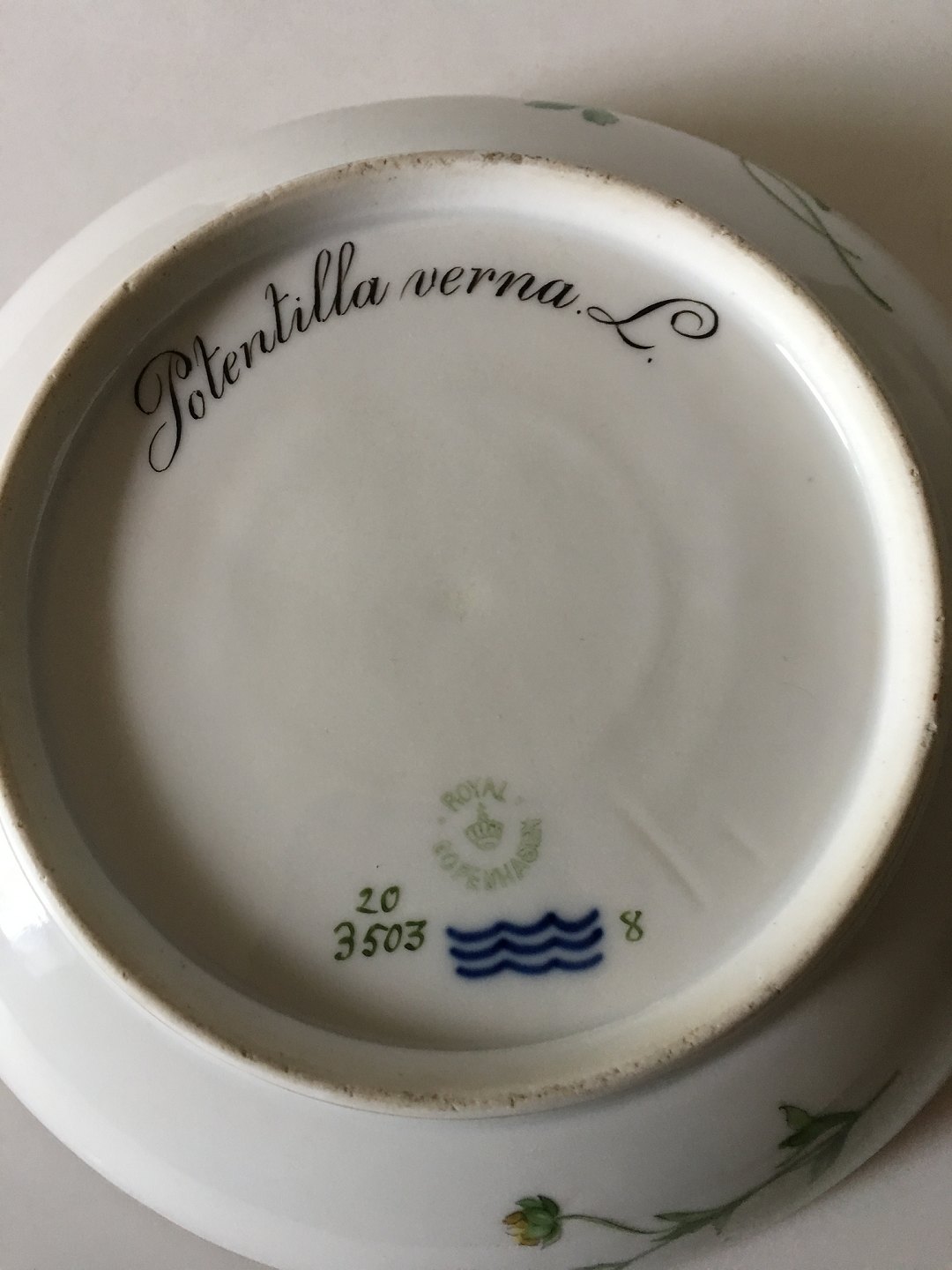 Royal Copenhagen Flora Danica Bowl No. 3503. Latin Name: Potentilla Verna. 5.5 cm H. 20 cm diameter. In perfect condition.