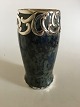 Bing & Grondahl Unique vase with Silver mounting by Lotte Lindahl from 1913 in running glaze.