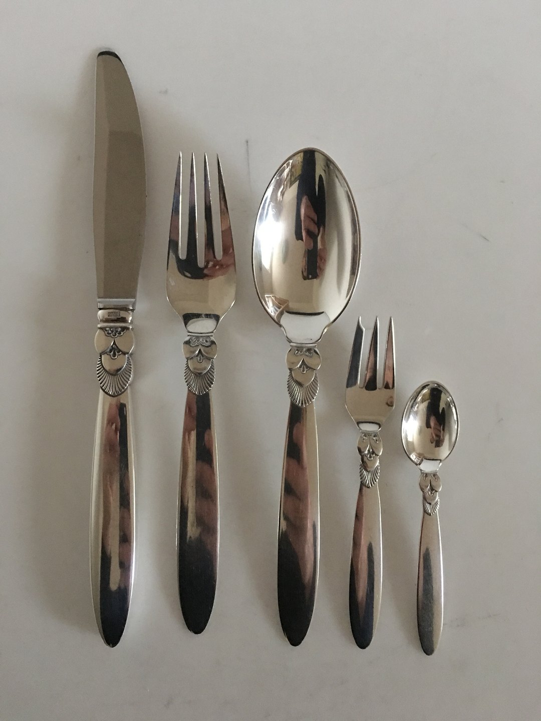 Georg Jensen Sterling Silver Cactus Flatware Set for 12 People. 60 Pieces. The set consists of the following items: