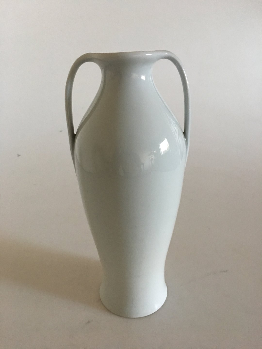 Heubach Art Nouveau Two Handled Column Vase with Poppy Motif. 21 cm H (8 17/64"). In nice condition.