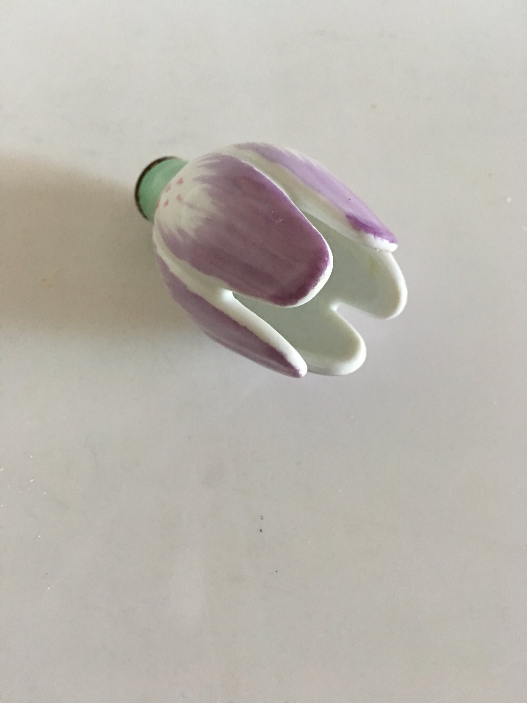 Royal Copenhagen Purple Porcelain Flower. Originally a decorative part of a chandelier. Measures 6.5 cm. In nice condition.