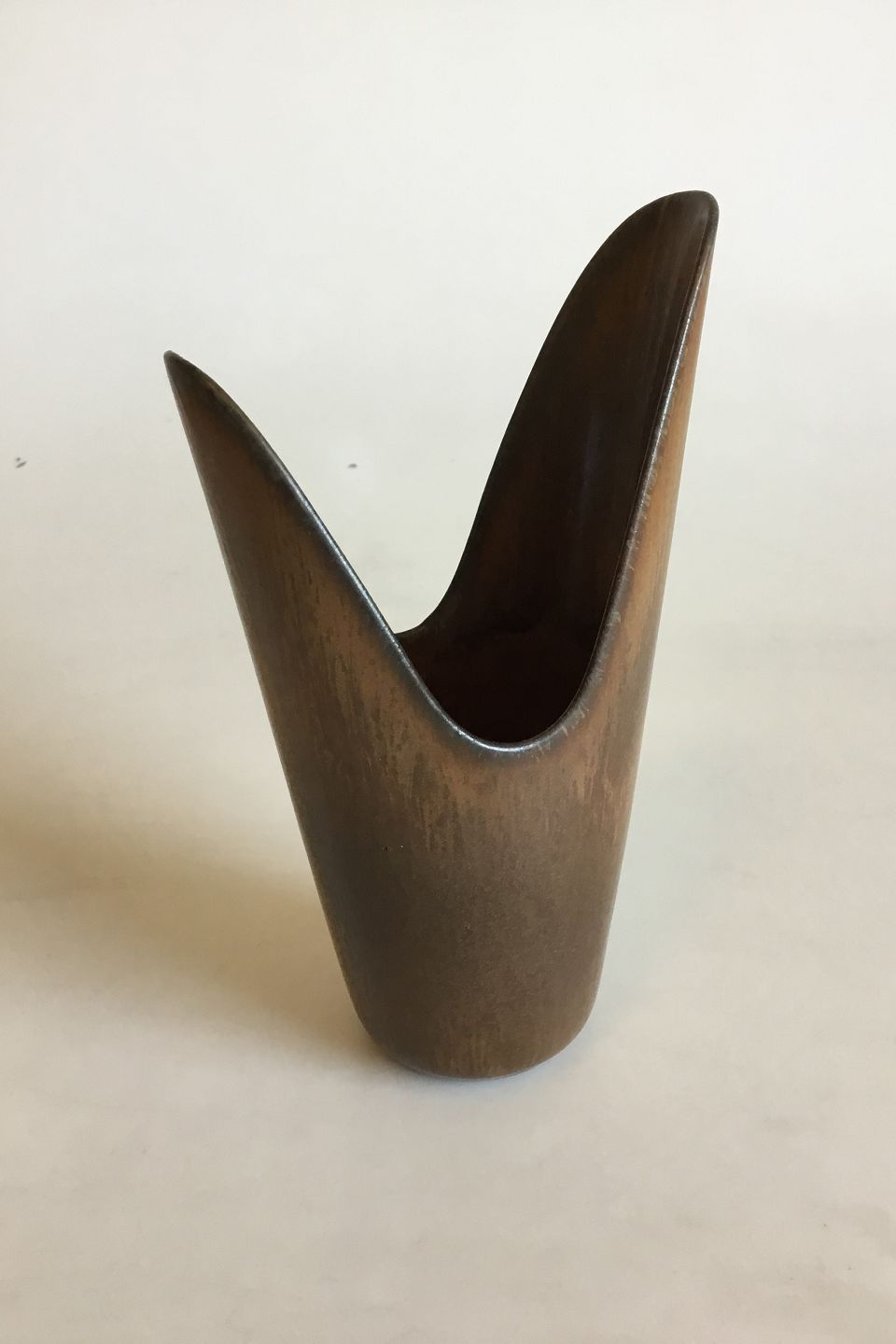 Rorstrand Stoneware Vase with Brown Glaze. Designed by Gunnar Nylund. Measures 18.5 cm / 7 9/32"