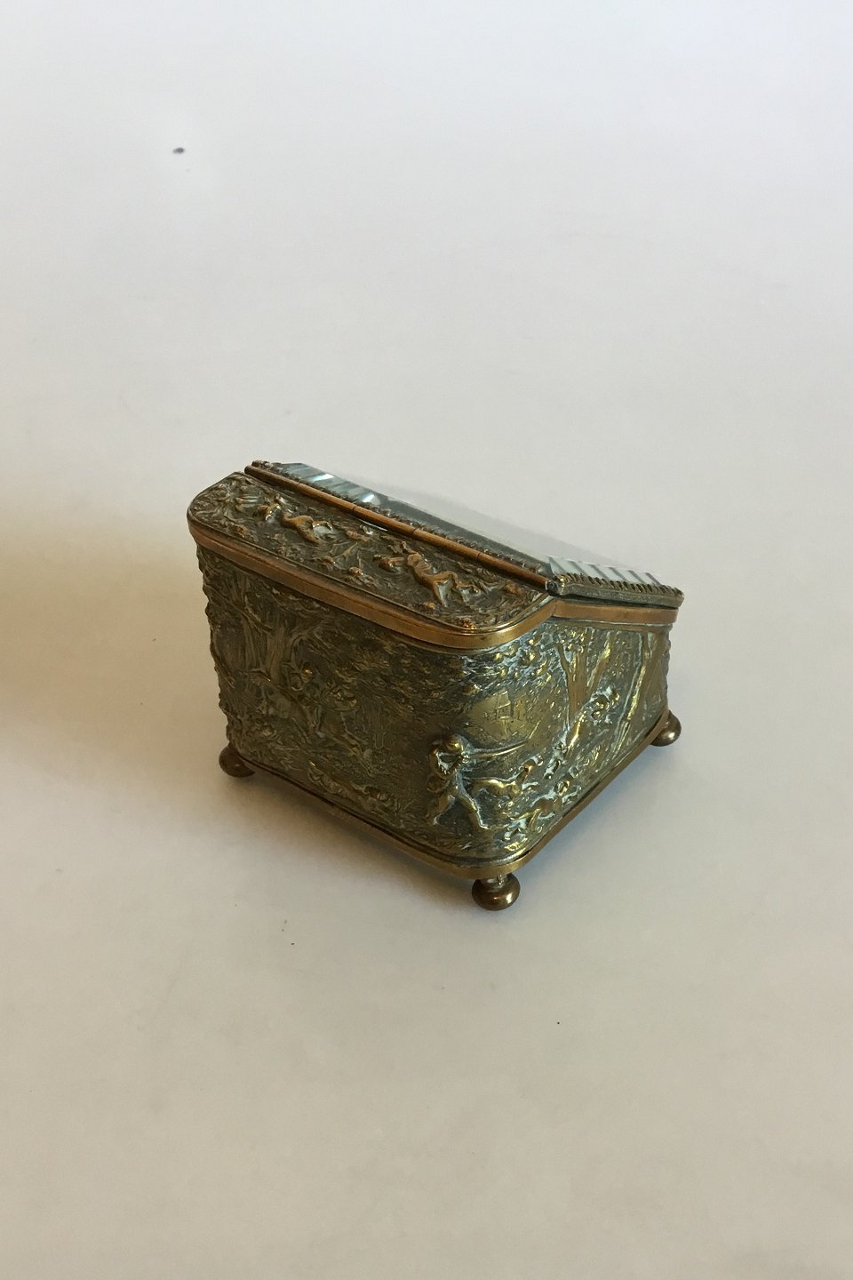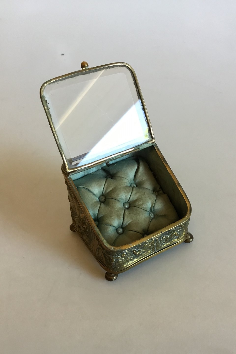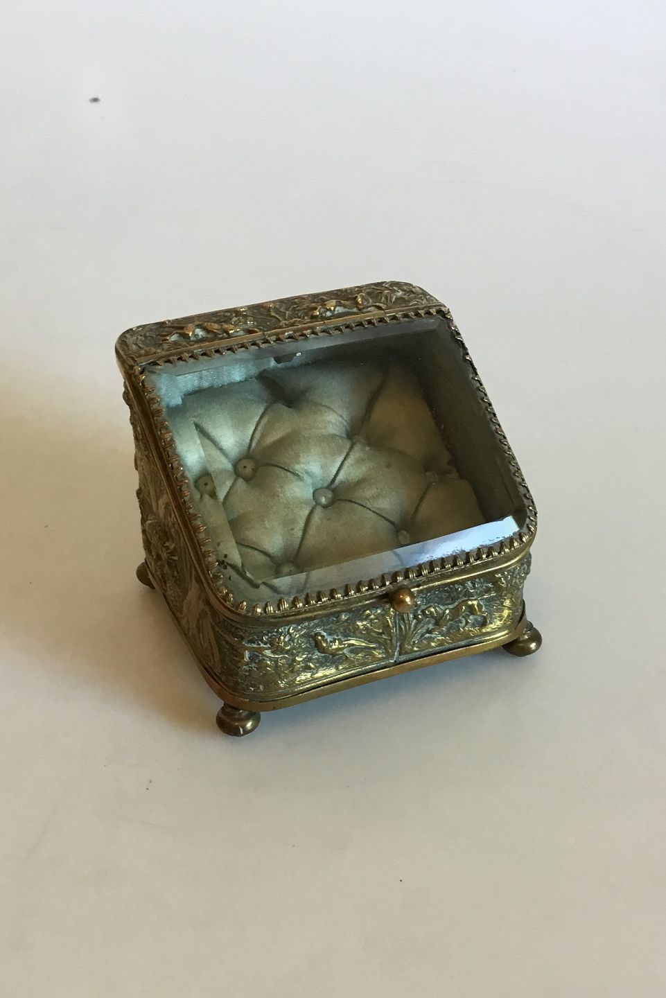Jewelry Box of Brass with Glass Lid. Measures 8 cm / 3 5/32 in. x 7.5 cm / 2 61/64 in. x 7 cm / 2 3/4 in.