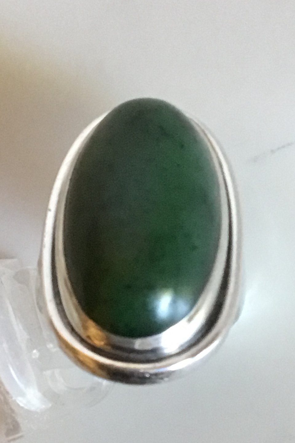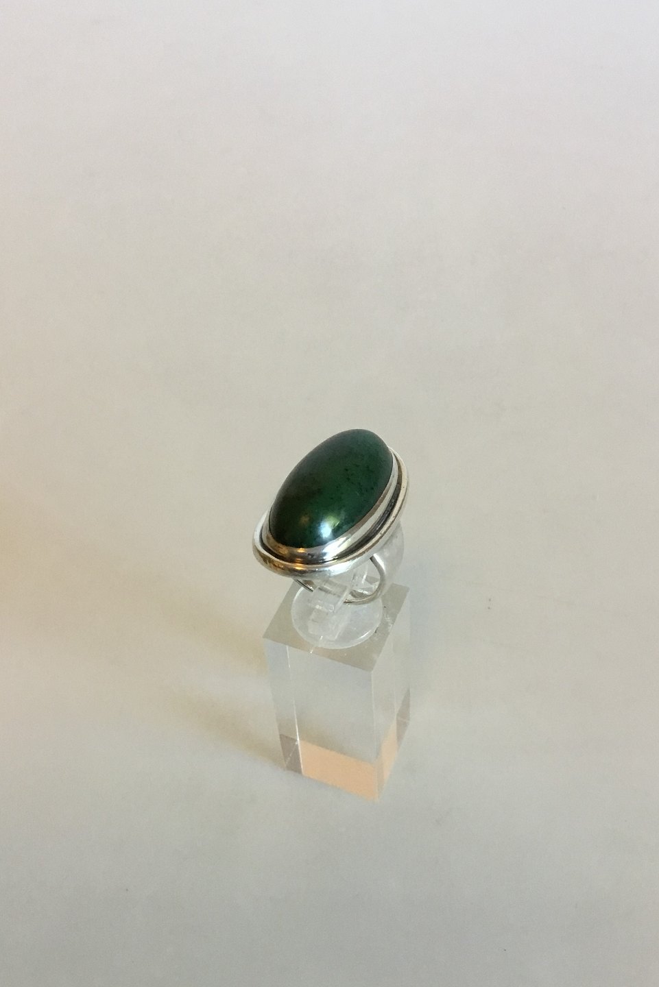 Georg Jensen Sterling Silver Ring with Green Stone No 46 E. Ring Size 55 / 7 US. Weighs 19.7 g / 0.69 oz.