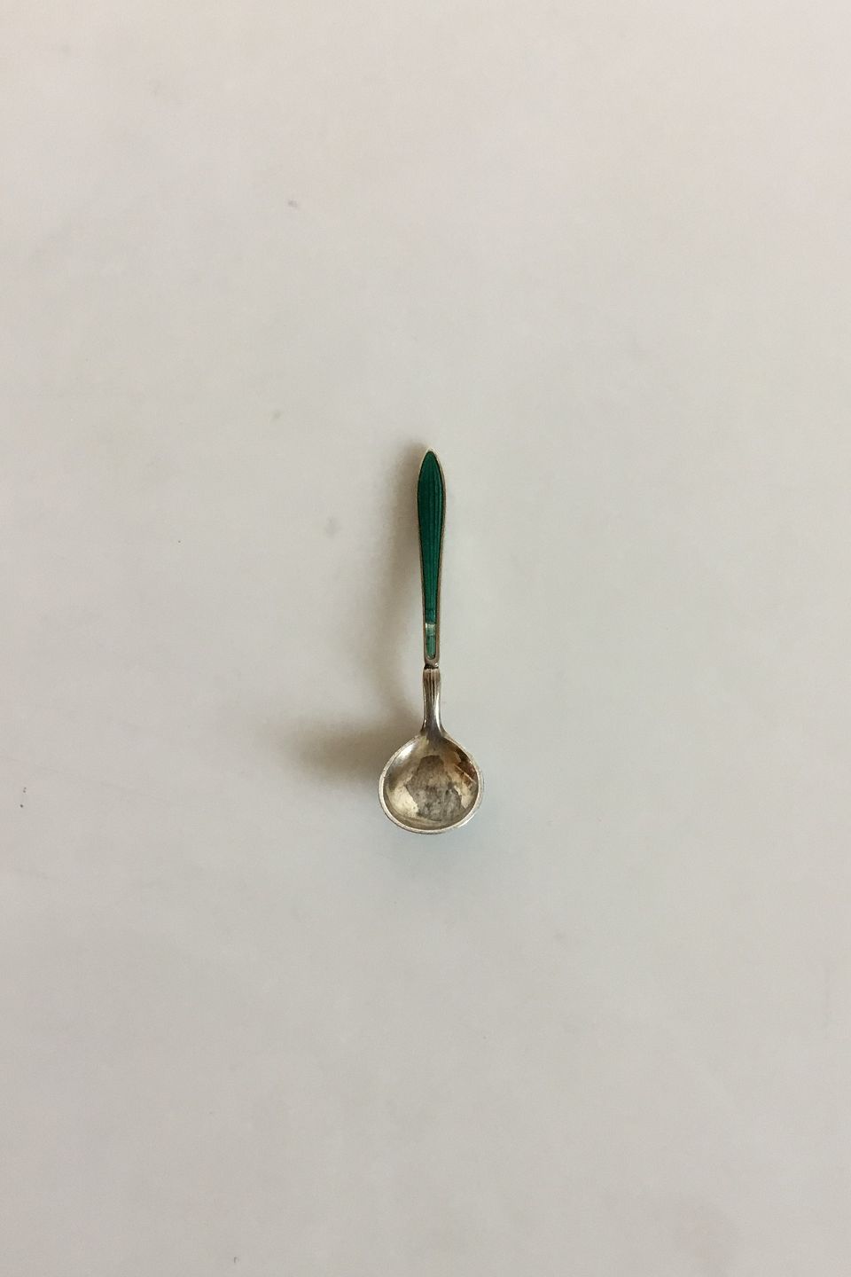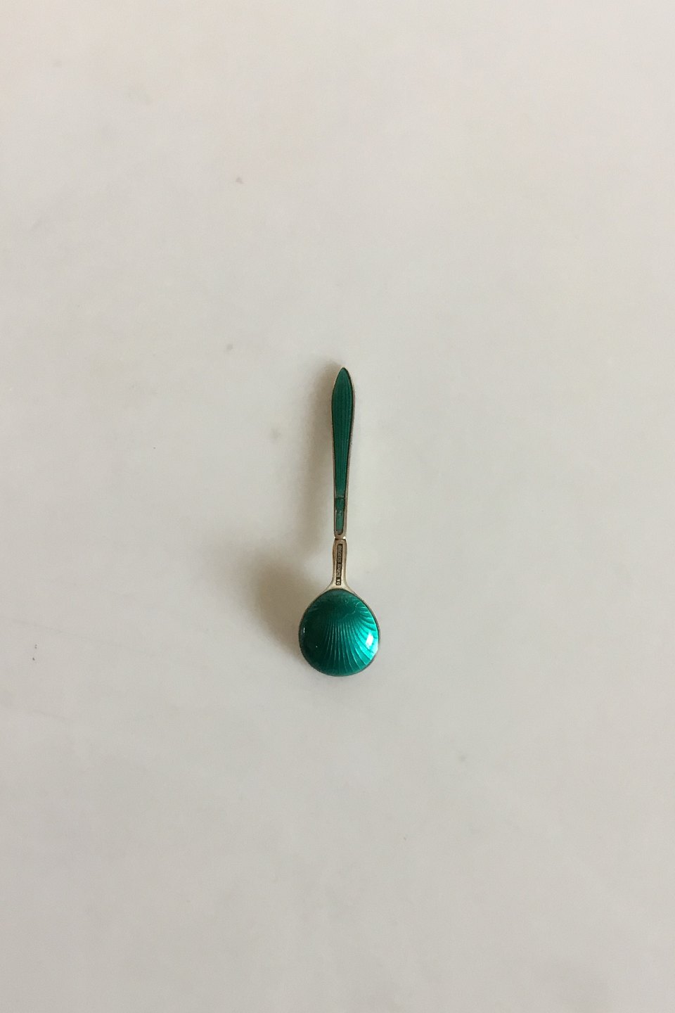 David Andersen, Norway, Gilded Salt Spoon with green Enamel. Measures 6.1 cm / 2 13/32 in.