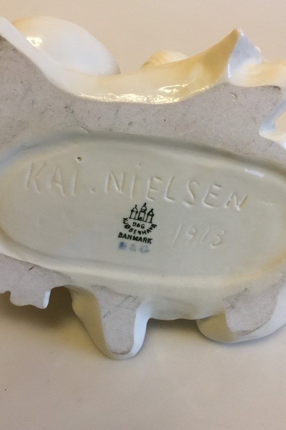 Bing & Grondahl Blanc de Chine Figurine of Neptune and woman on Fish No 4030. Designed by Kai Nielsen. Measures 15 cm / 5 29/32 in. x 18 cm / 7 3/32 in.