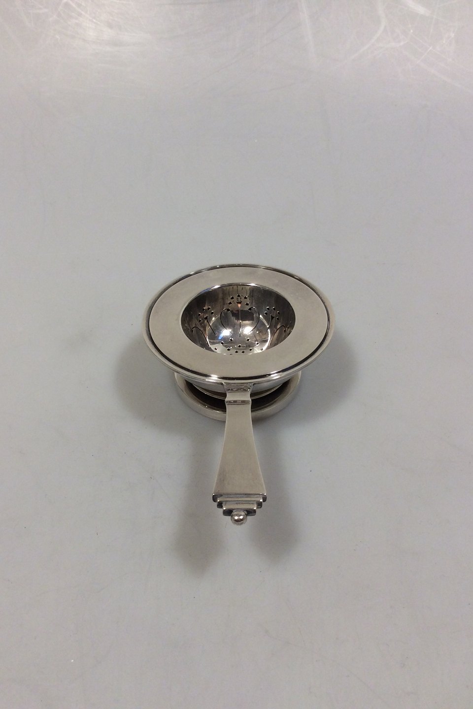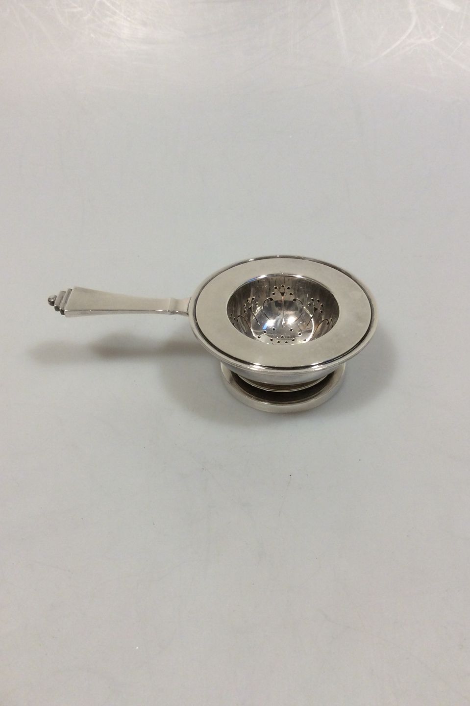 Georg Jensen Pyramid Sterling Silver Tea Strainer and The Strainer Holder No 600A.