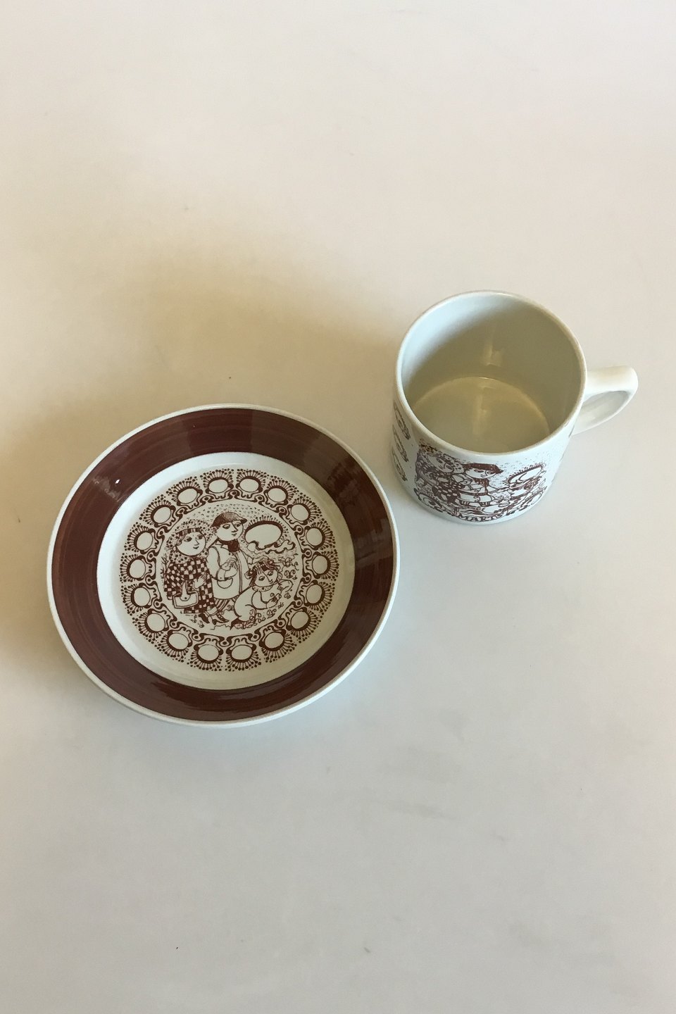 Bjorn Wiinblad, Nymolle March Month Cup and Saucer No 3513. Measures Cup: 7 cm / 2 3/4 in. x 8 cm / 3 5/32 in. dia. Saucer: 15 cm / 5 29/32 in.