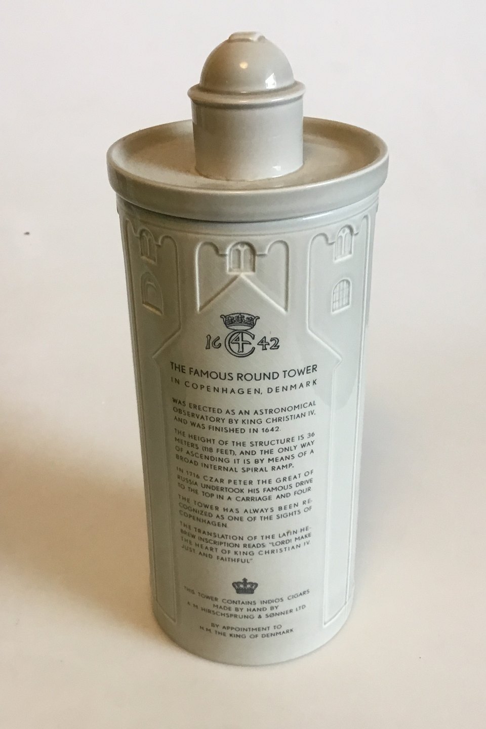 Royal Copenhagen Jar with Lid for Cigars shaped as The Famous Round Tower. Made by hand by A. M. Hirschsprung & sons Ltd. Measures 24 cm / 9 29/64 in.