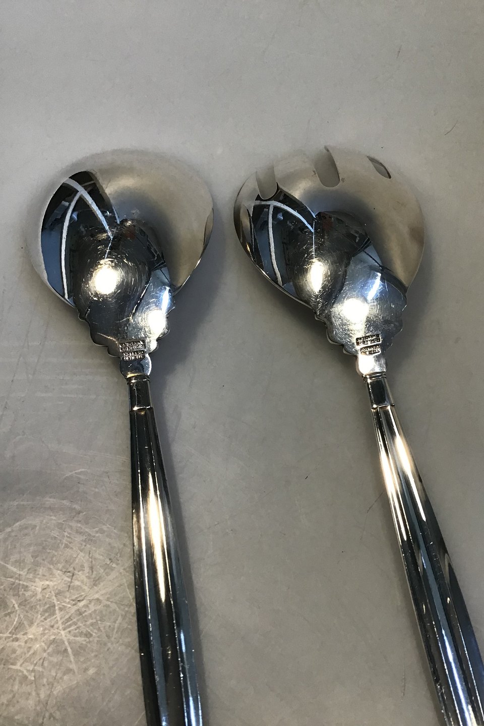 Georg Jensen Sterling Silver Acorn Servingset Medium, No 113+114 Measures Spoon 22.8 cm (8.97 in) Fork 22.6 cm (8.89 in)