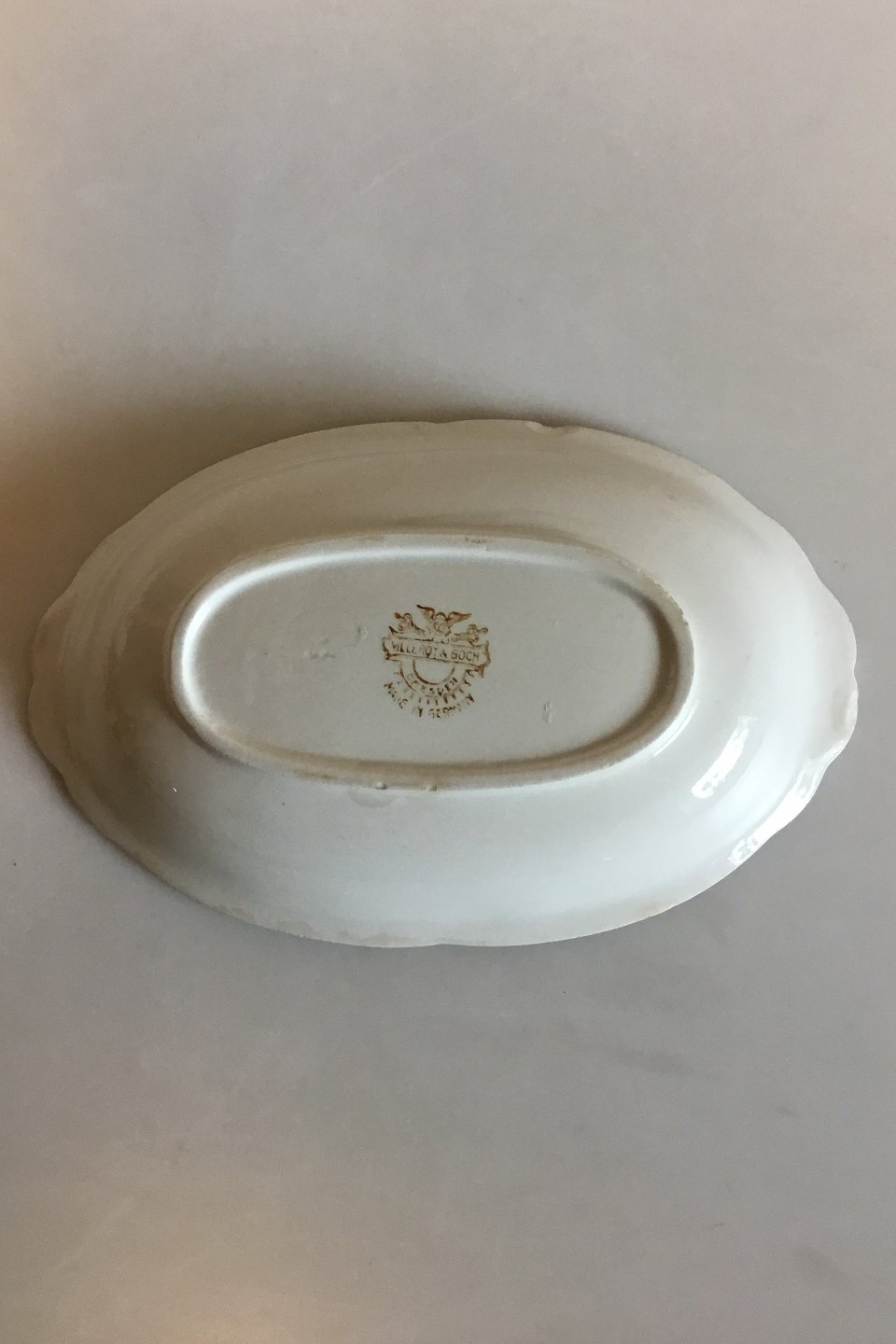 Villeroy & Boch Blue Olga Oval Dish. Measures 21.5 cm / 8 15/32 in. x 13.5 cm / 5 5/16 in. Minor chip, discoloration and/or crack