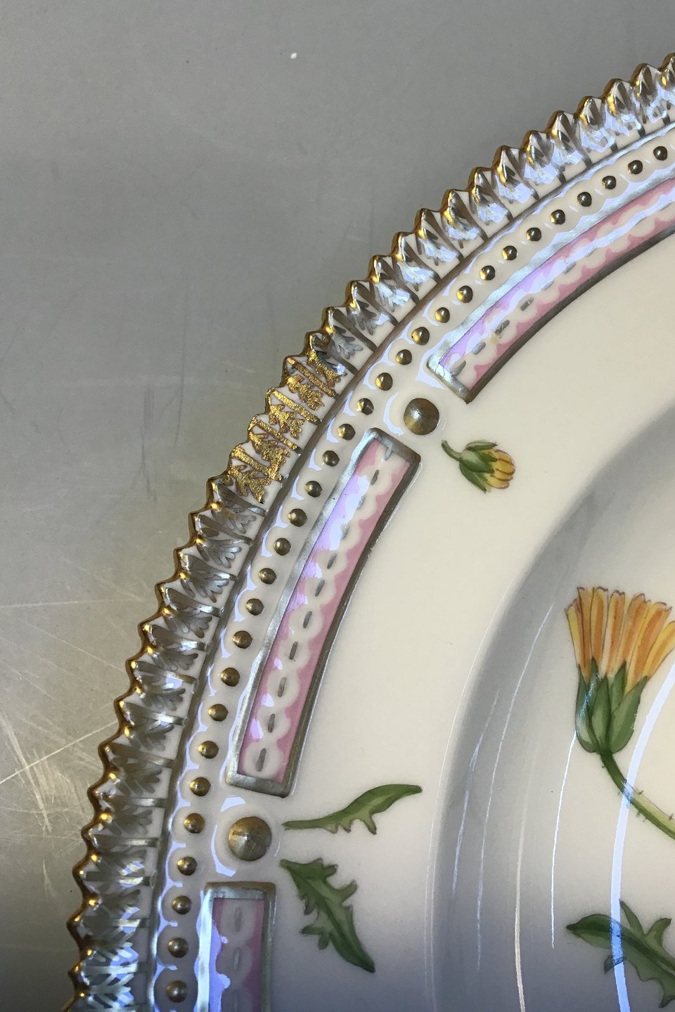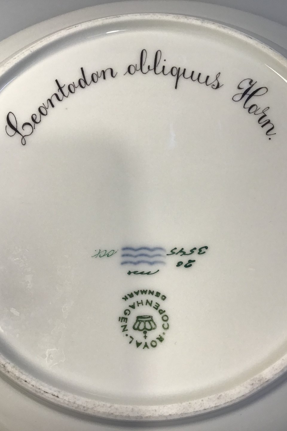 Royal Copenhagen Flora Danica Deep Plate No 20/3545. Latin Name Leontodon obliquus Horn (Dandelion) Measures 25 cm (9.84 in)(with Repair)