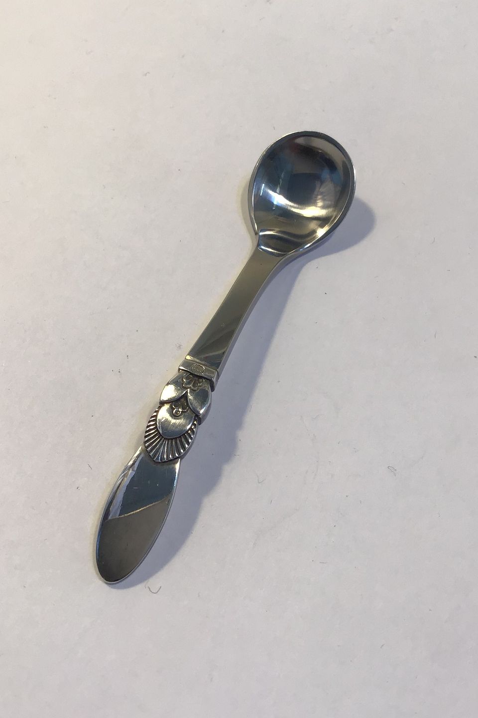 Georg Jensen Sterling Silver(Steel) Cactus Mustard Spoon No 106 Measures 8.7 cm (3.42 in)