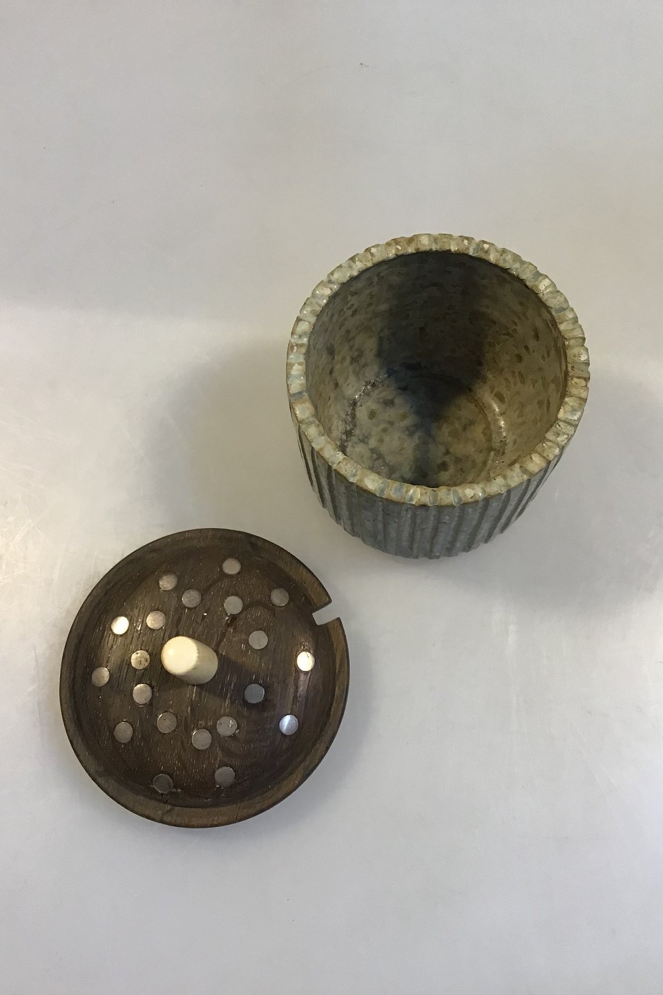 Arne Bang: Stoneware Jam Jar with Wodden Lid Signed monogram. Measures H 9 cm (3 35/64 in) incl finial