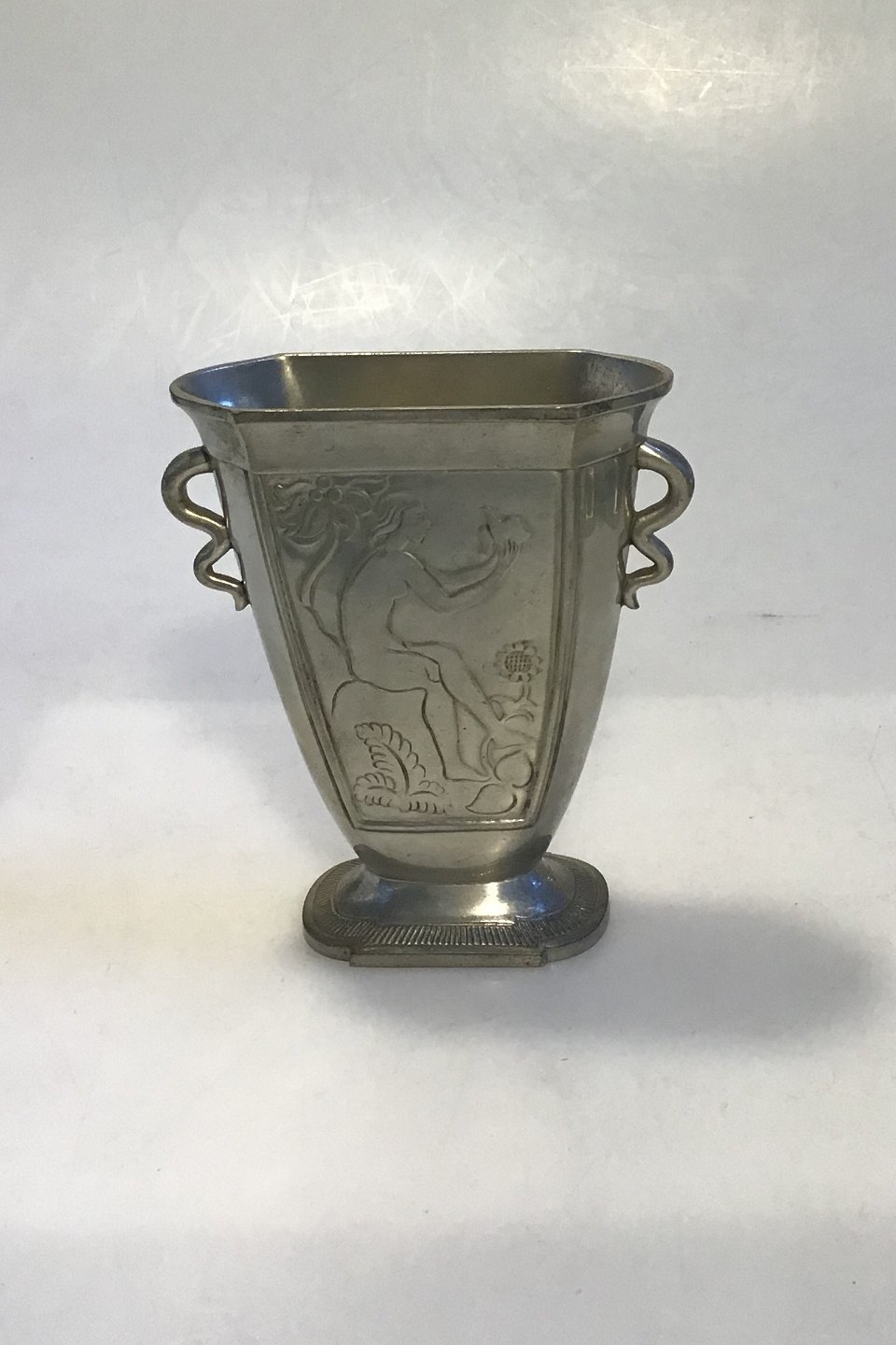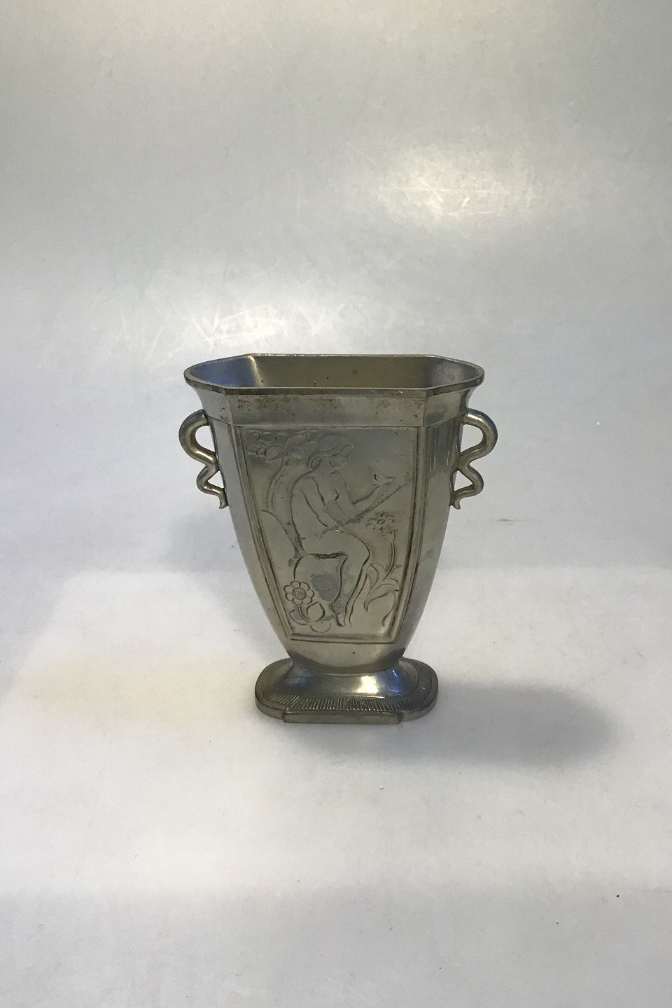 Just Andersen Pewter Art Deco Vase No. 78 Woman with bird. Measures H 12.5 cm x W 11 cm x D 4 cm(4 59/64 in 4 21/64 in x 1 37/64 in))