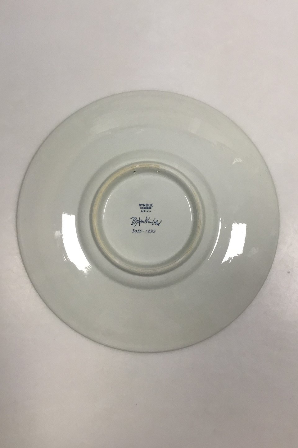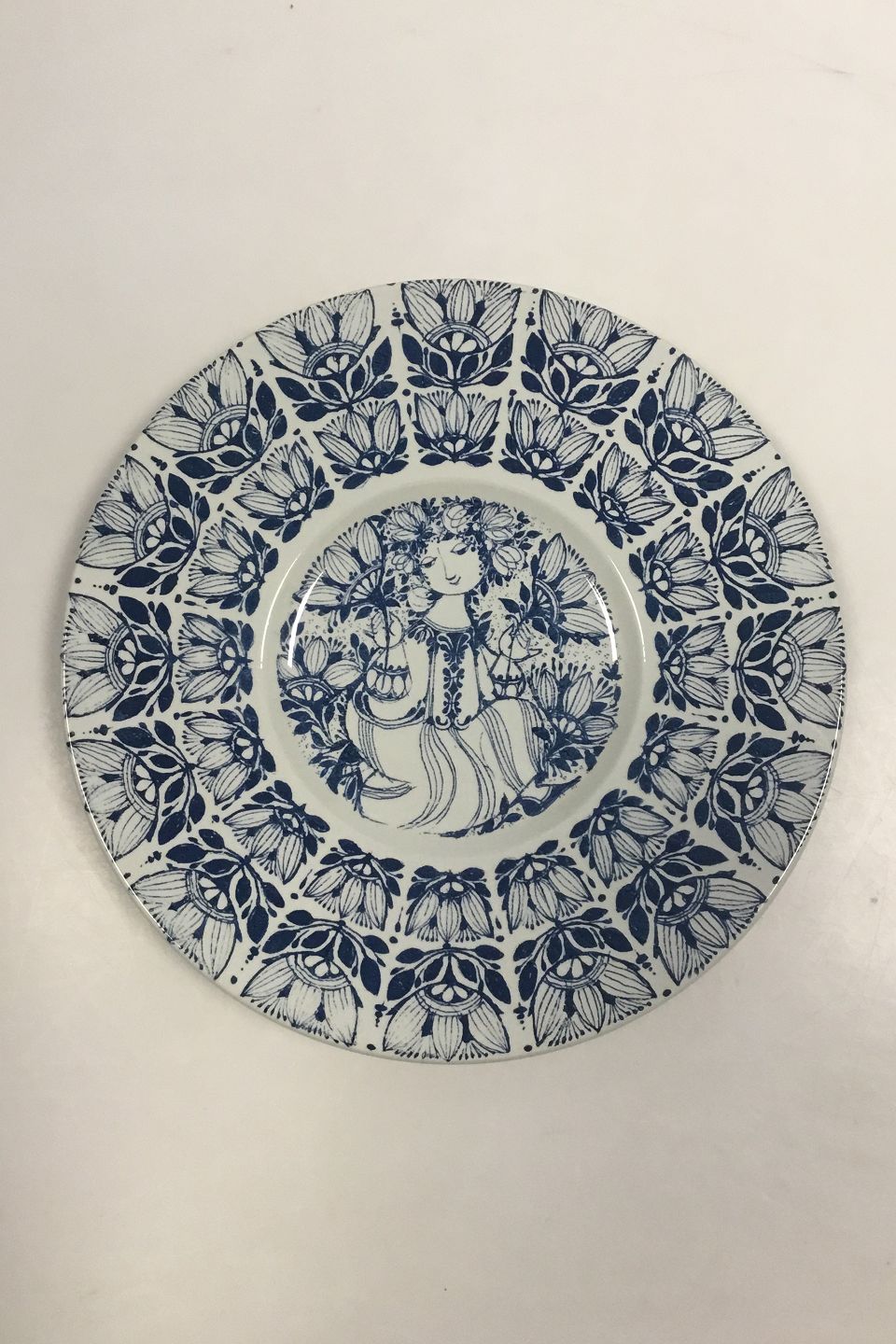 Nymollel Bjørn Wiinblad Faience plate with blue decoration of girl No 3055-1283. Measures 26 cm / 10 15/64 in.