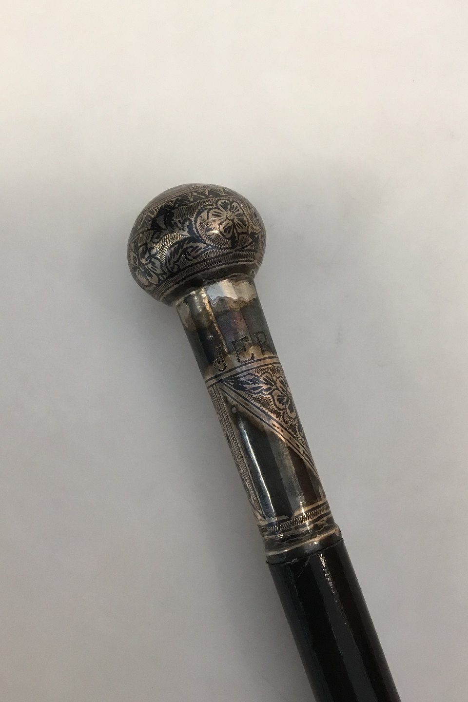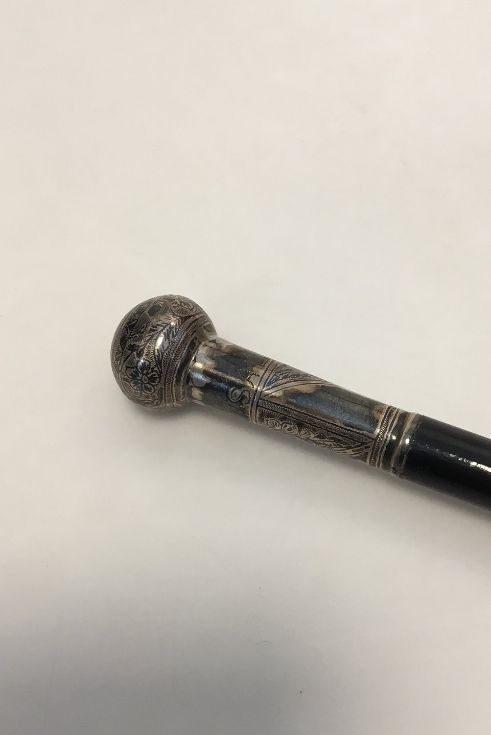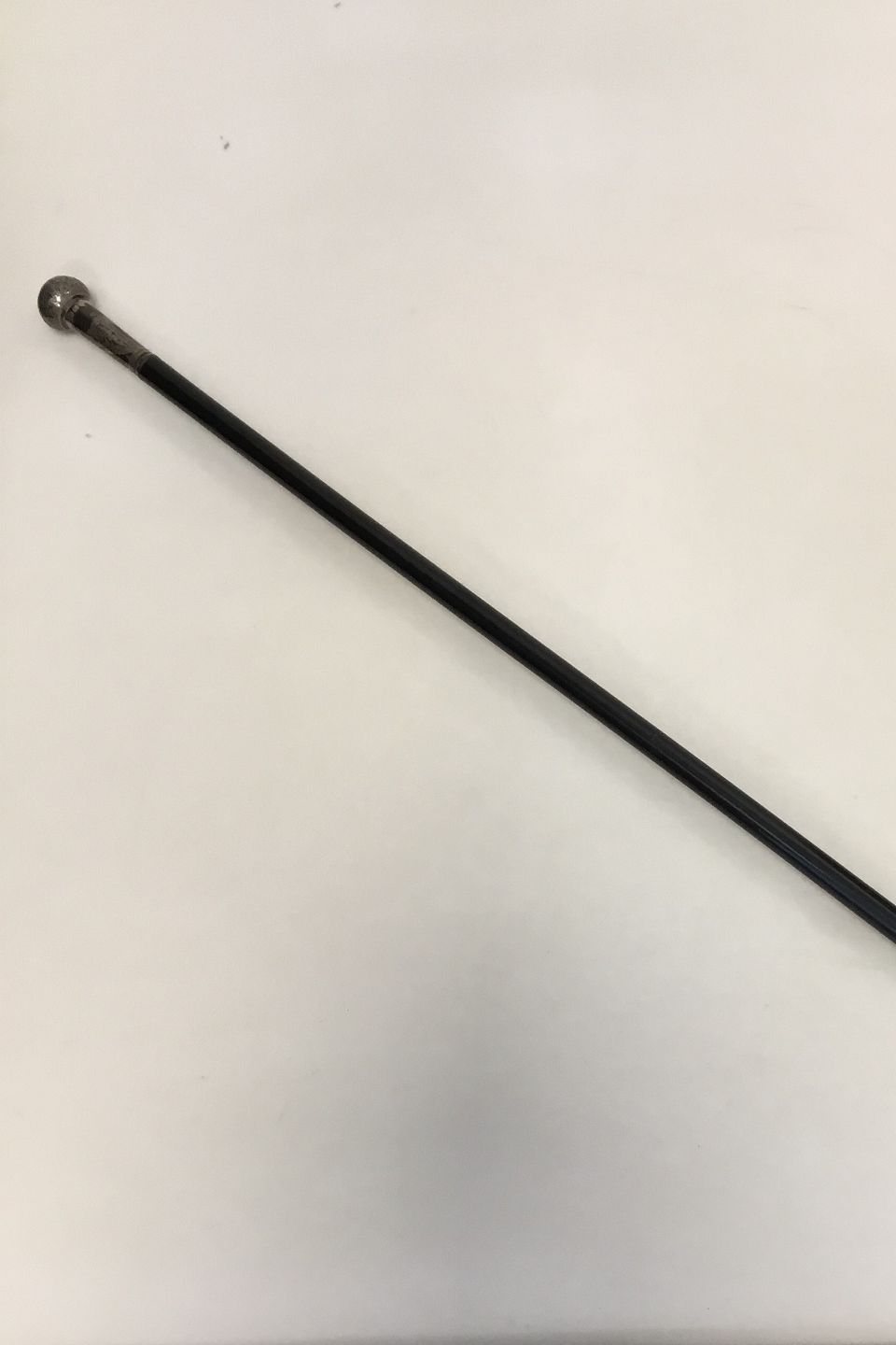 Walking cstick in black lacquered wood with silver handle. Measures 85 cm. With wear and tear