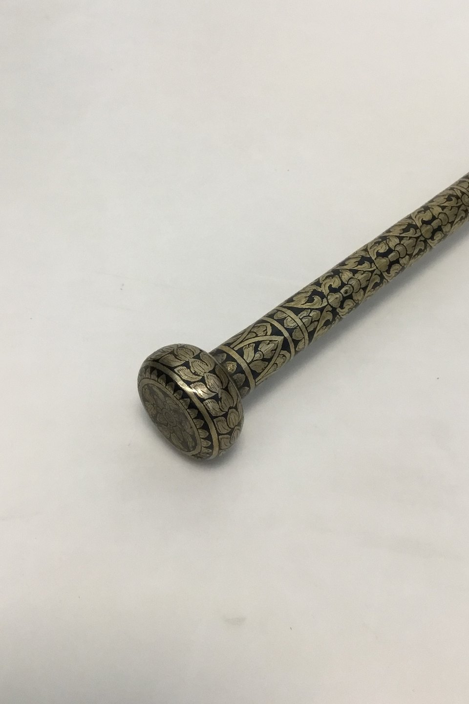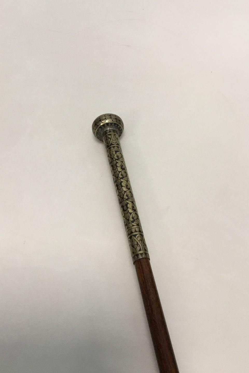 Walking stick of lacquered wood with silver handle. Normal wear and dents. Measures 83 cm / 32 43/64 in.