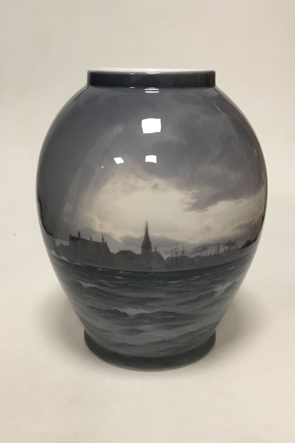 Royal Copenhagen Unique Vase by Christian Benjamin Olsen from May 1913. " Sundet ved Kronborg" ("The Sound at Kronborg Castle")