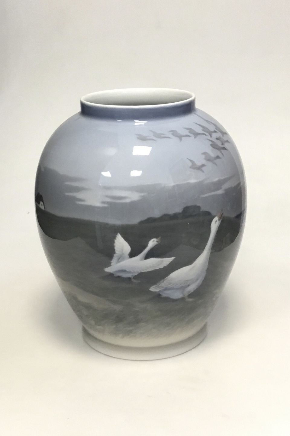 Royal Copenhagen Vase decorated with Geese and ducks in a landscape. No. 1508/35B. H: 30 cm(11 3/16")