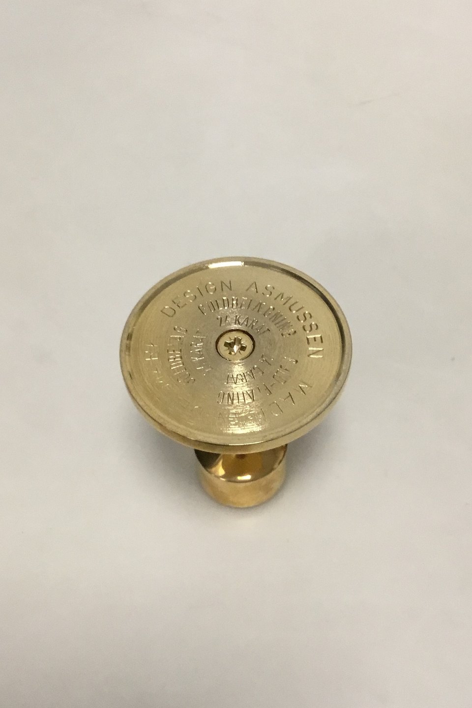 Candle holder, 24 ct. gold plated. Design by Asmussen. Measures 8 cm / 3 5/32 in.