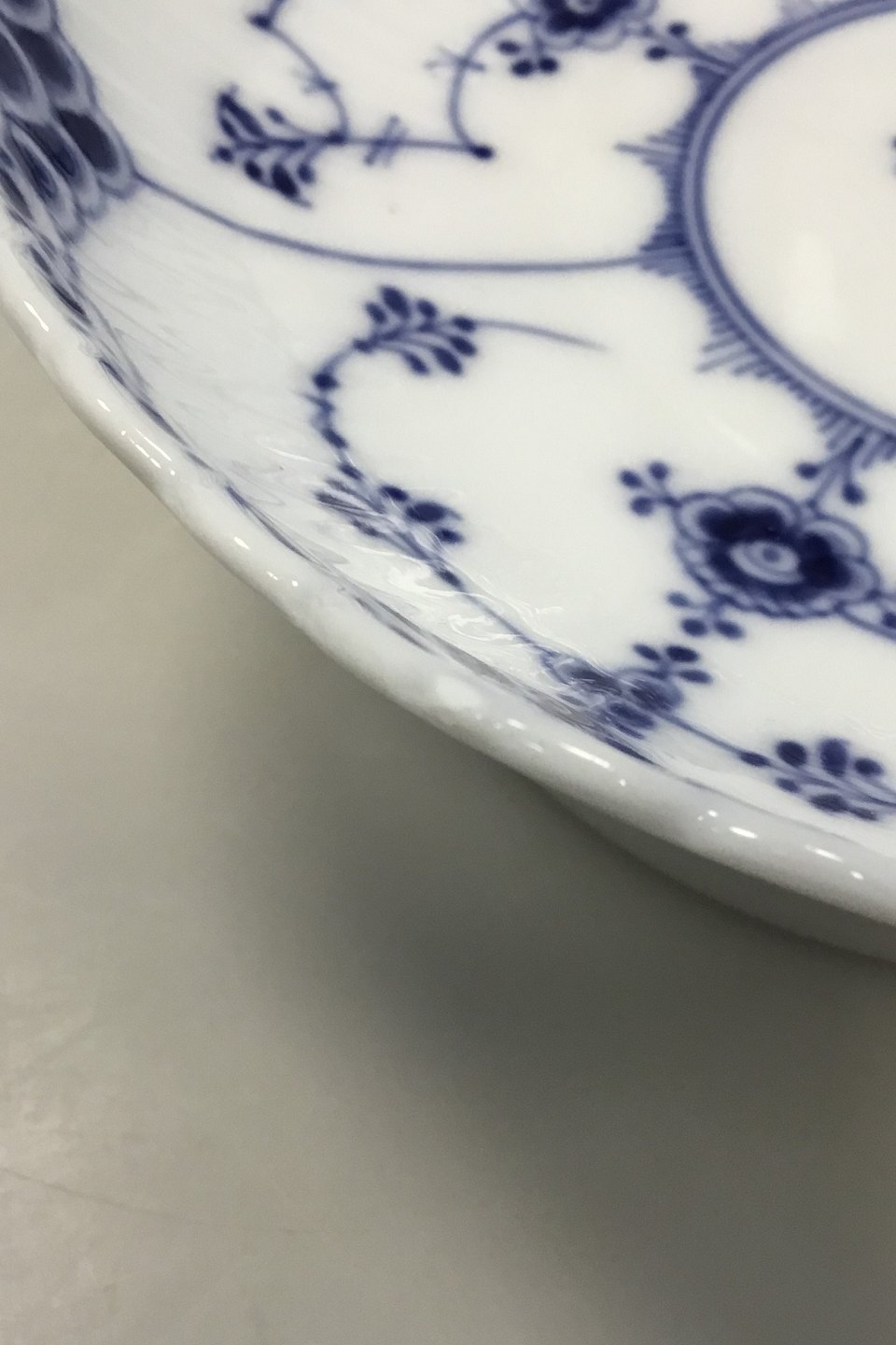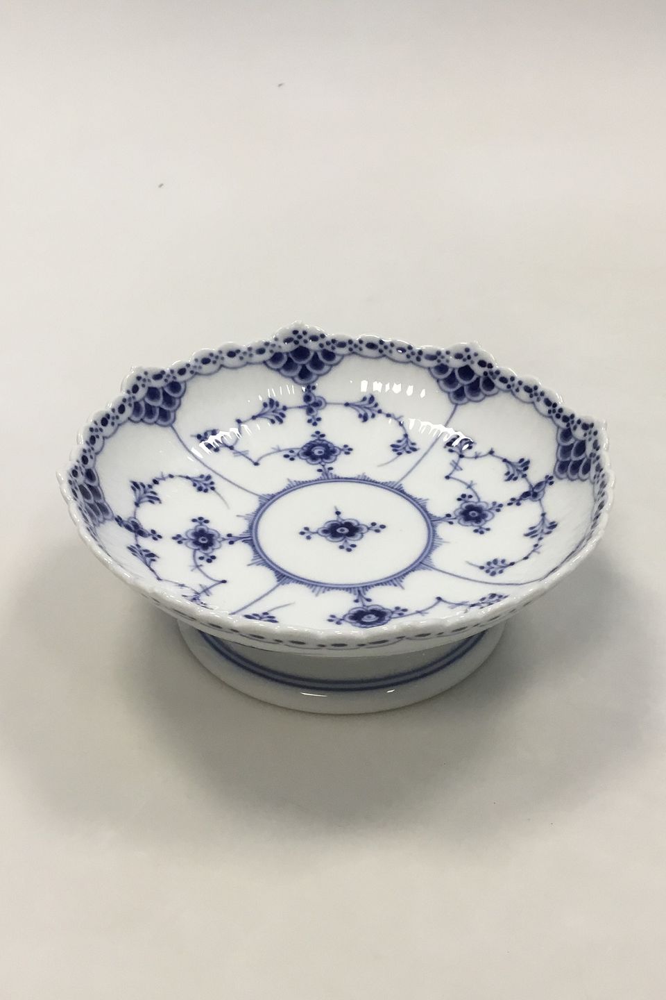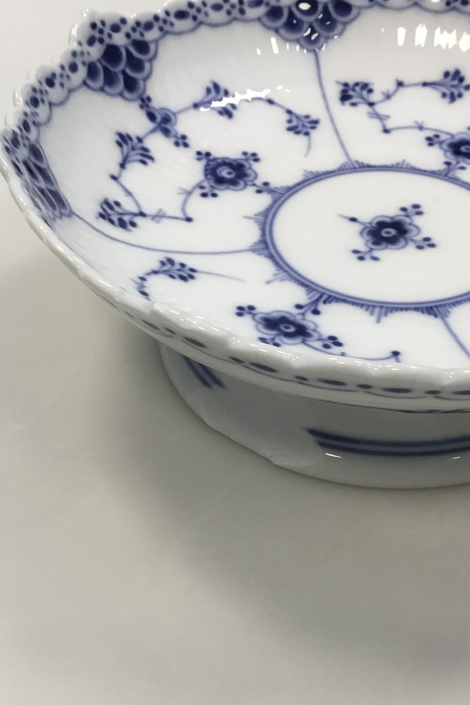 Royal Copenhagen Blue Fluted Half Lace Bowl on foot no 511. Measures 17.5 cm / 6 57/64 in. Has af chip on the foot and on the edge