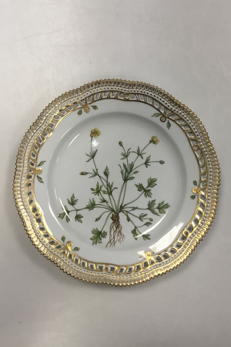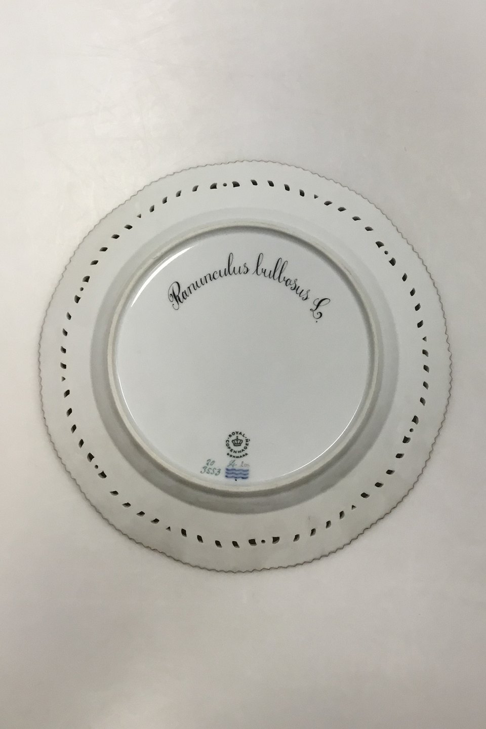 Royal Copenhagen Flora Danica Plate with pierced border No 20/3553. Latin name: Ranunculus bulbosus L. Måler 25.5 cm / 10 3/64 in.