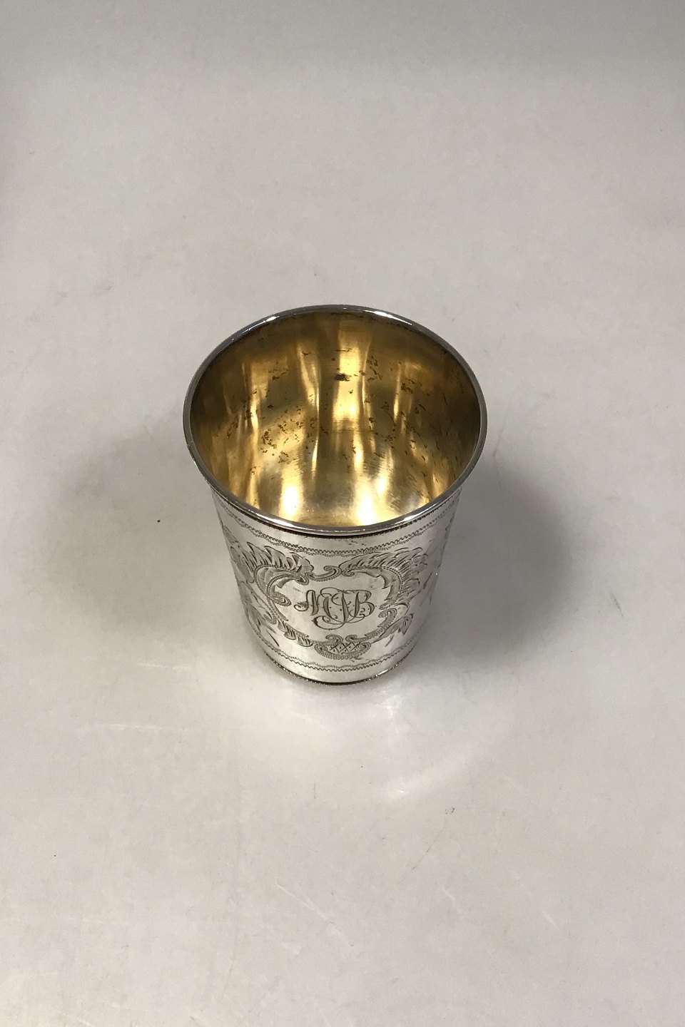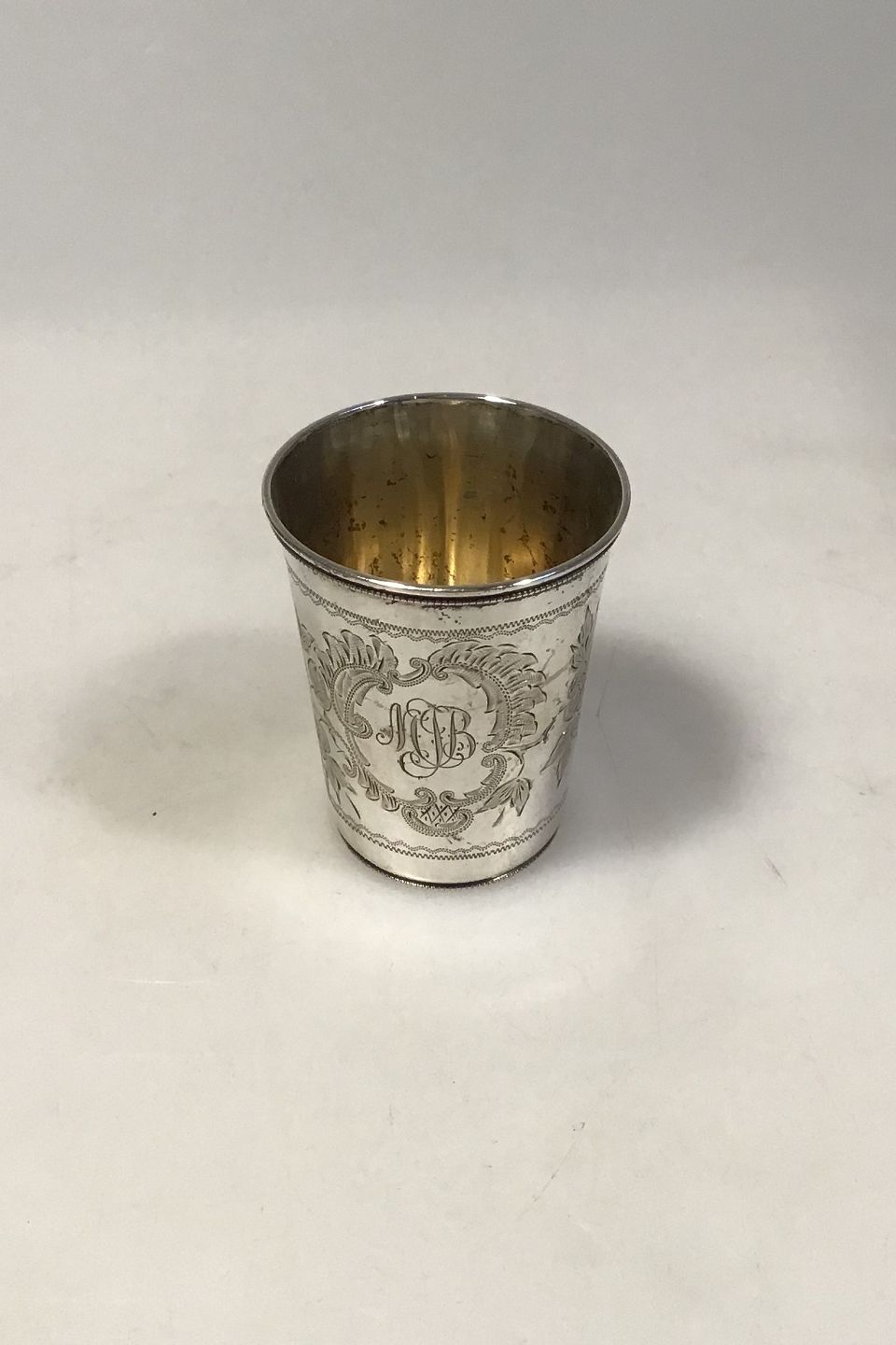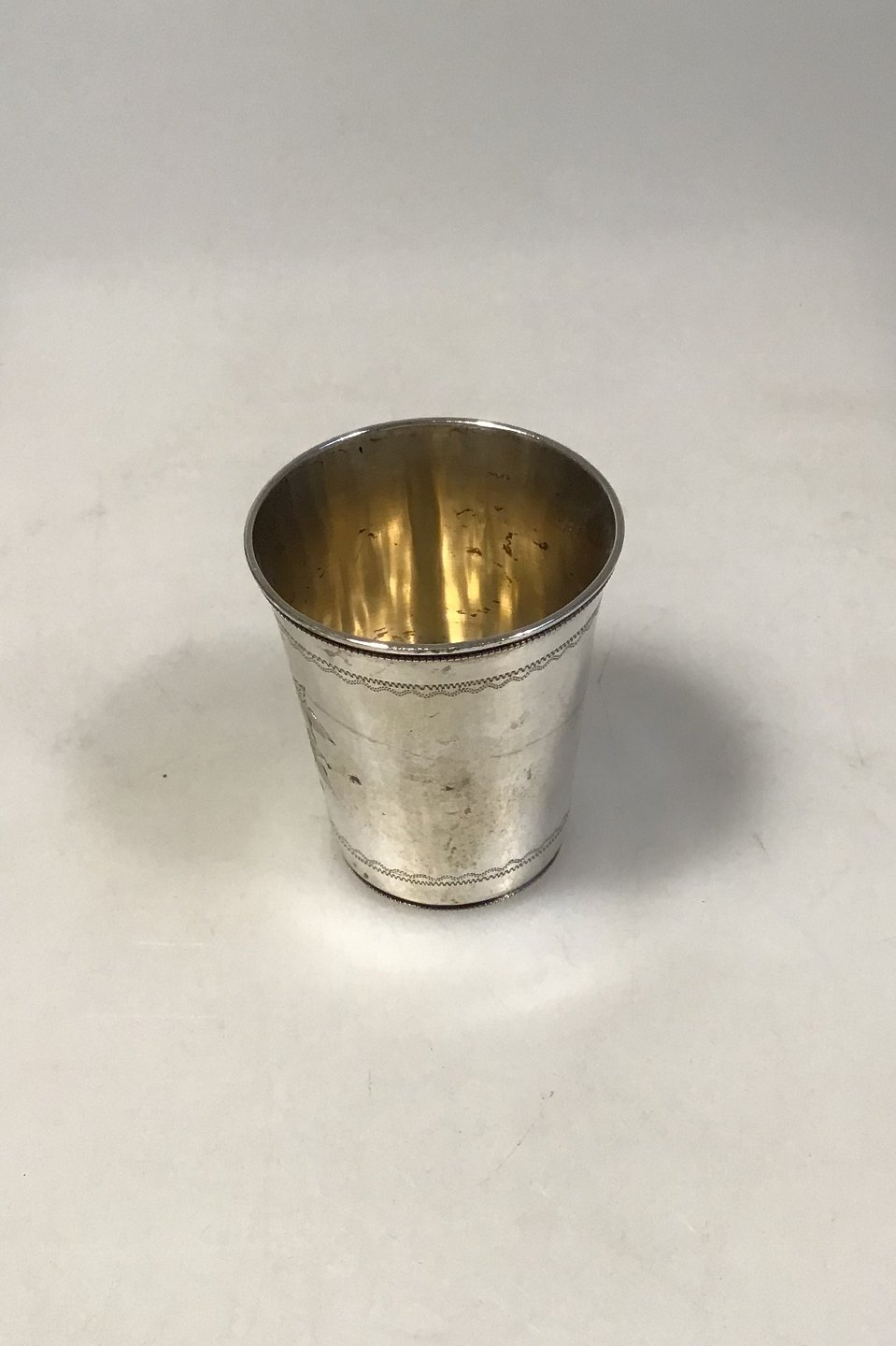 Danish Silver Cup, Chr. R. Jensen (1906) Measures H 6 cm (2 23/64 in)Weight 35.9 gr/1.27 oz Foliage- and Letter Engravings