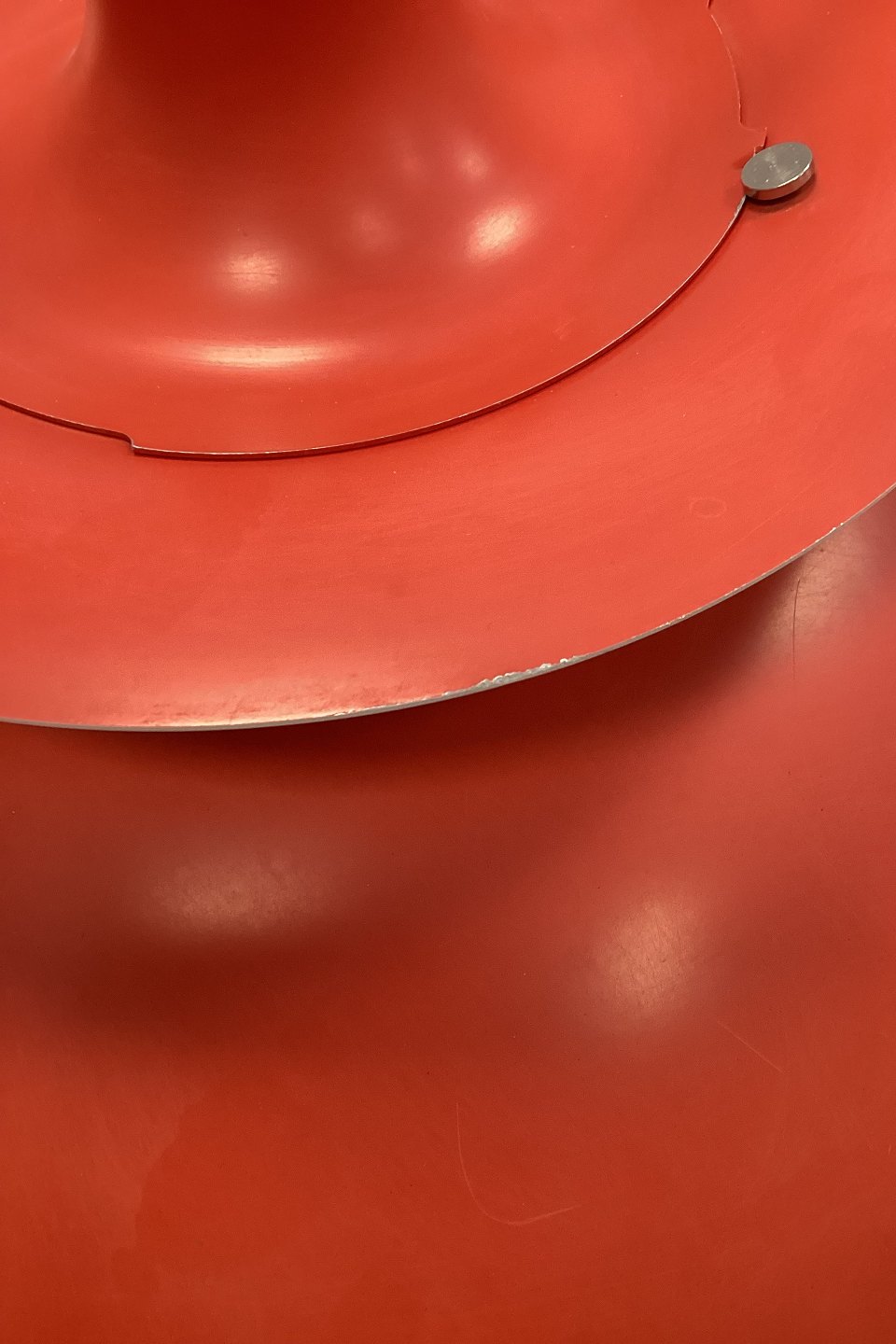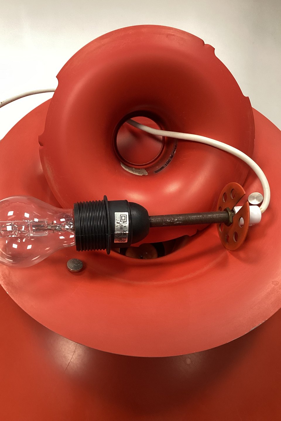 Poul Henningsen for Louis Poulsen Red pendant light PH 5. The old model with plastic cord.