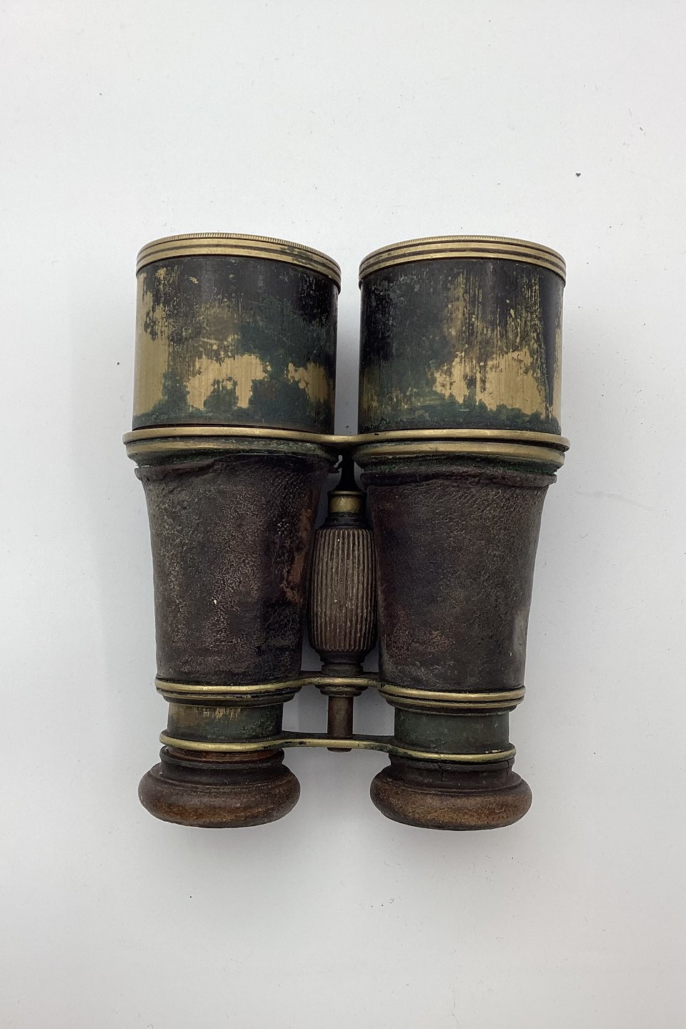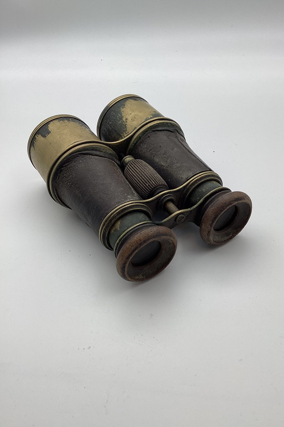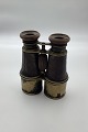 Old binoculars in brass and leather from the end of the 19th century. Works fine. No factory mark is seen anywhere. Length 16 cm (6.29 inch).