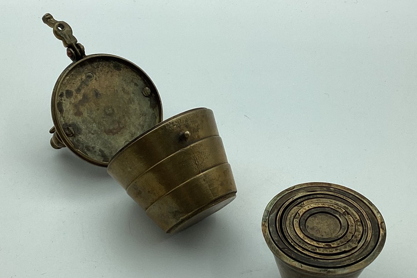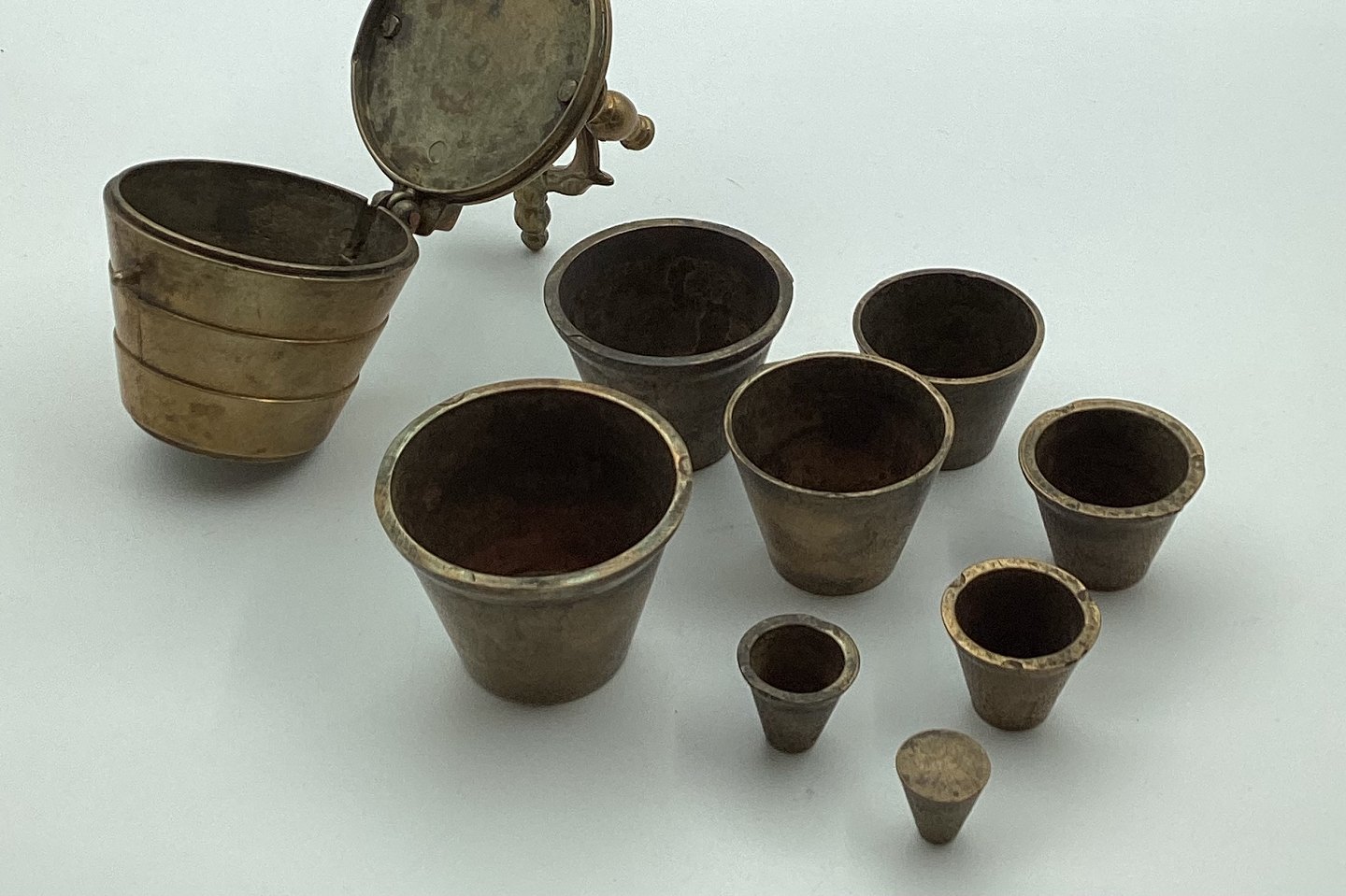 Nest of weights. In good condition. 9.5 cm without handle (3.54 inches).
