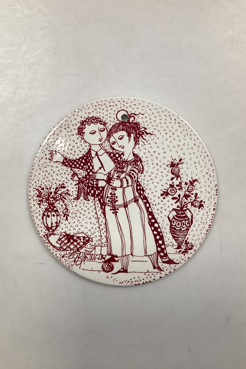 Rød månedsplatte i fajance for november - OPTIMISME. Designet af Bjørn Wiinblad for Nymølle. I god stand. Fabriksmærket på bagsiden. Mål: 15 cm (5.90 inch.)